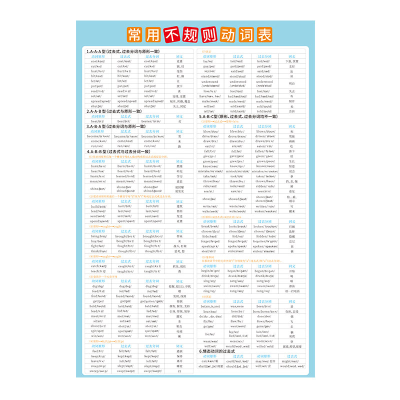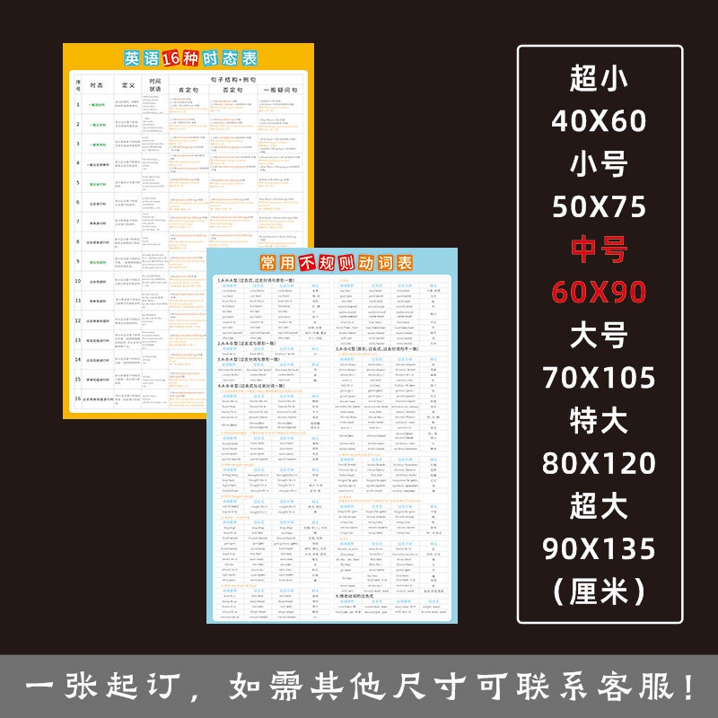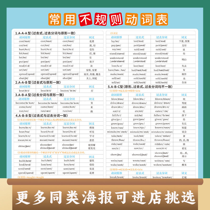 📚 高中英语八大时态表海报小学初中英语不规则动词表墙贴挂图汇总