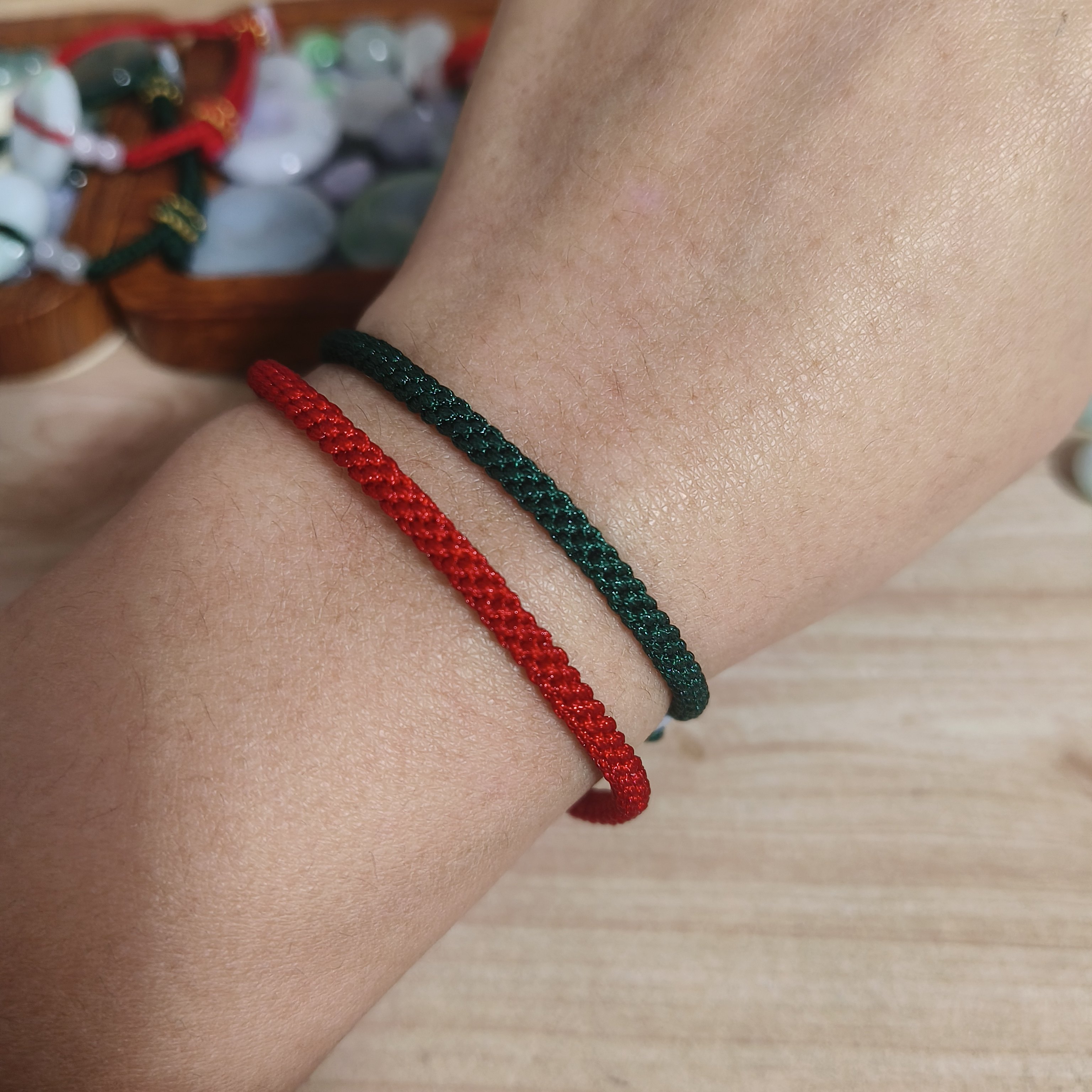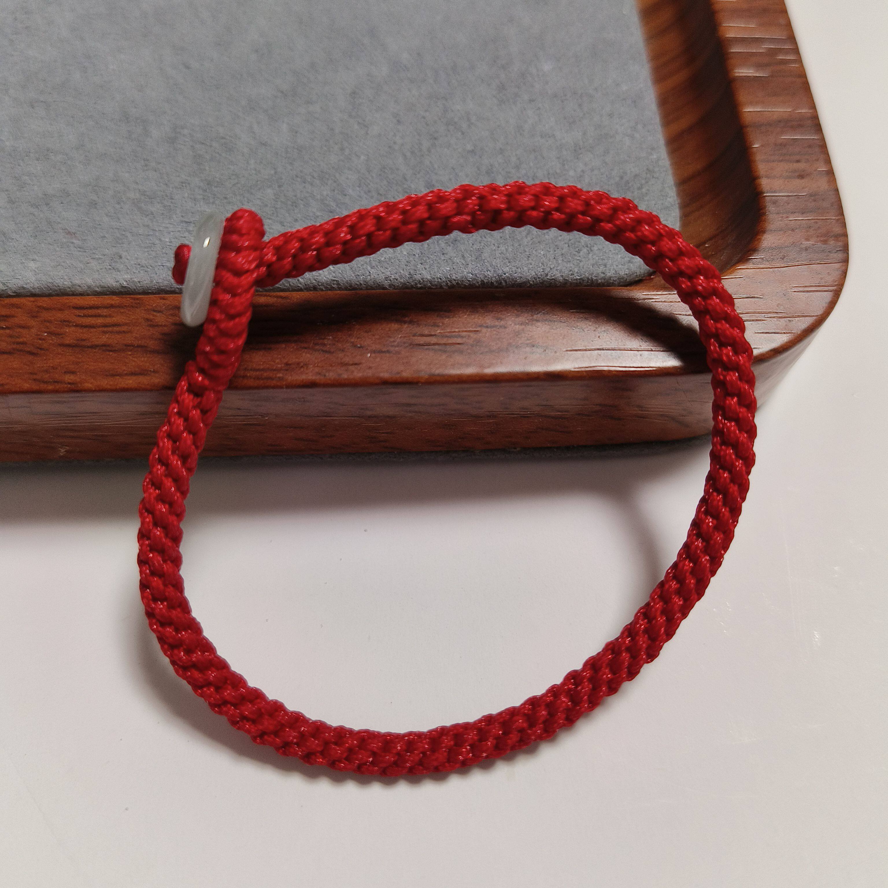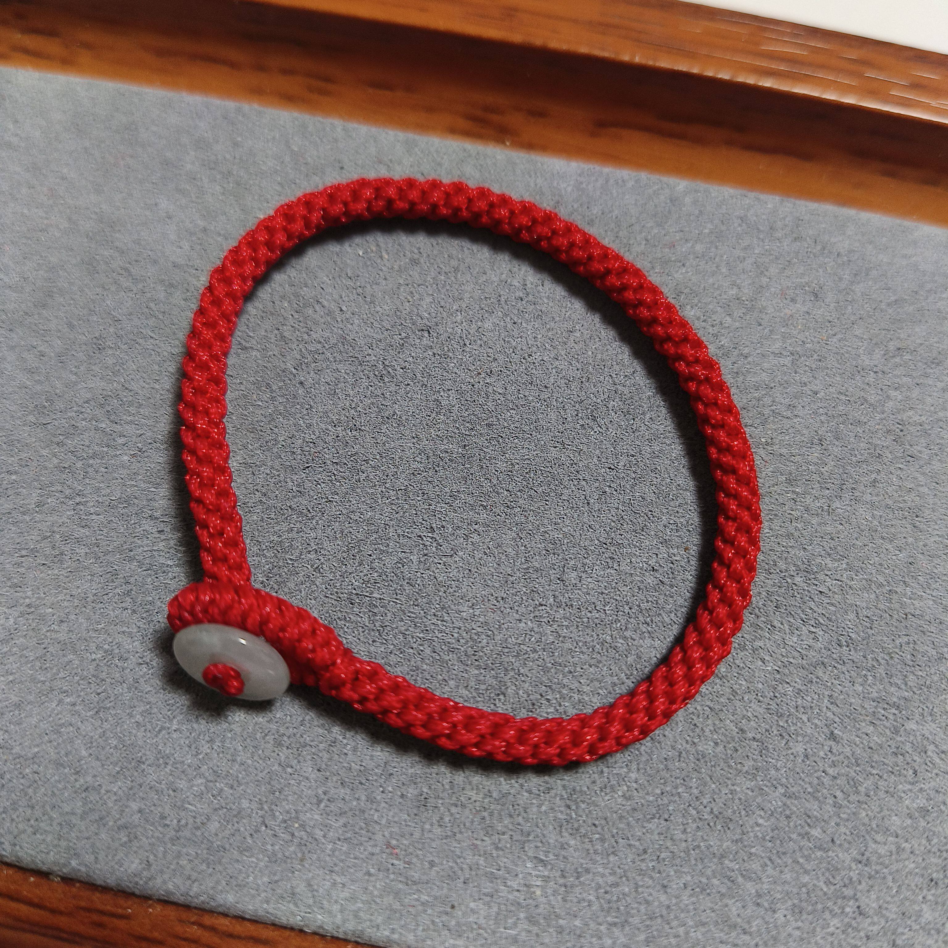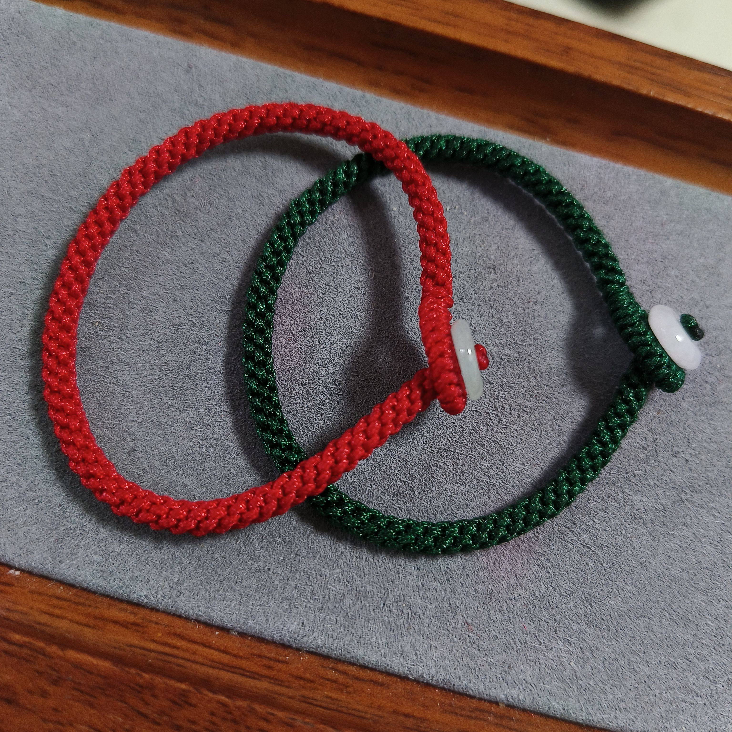 📚 纯手工编织红绿绳玉米结素绳本命年小众简单手链多福翡翠玉平安扣