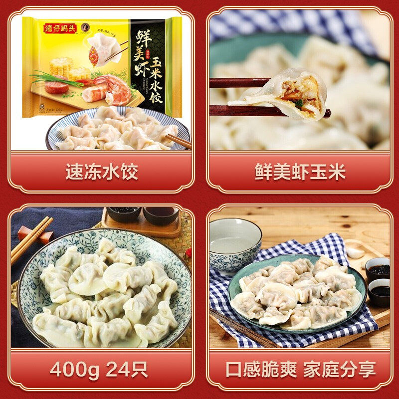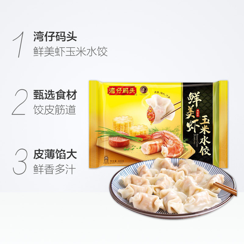 📚 [四件五折]湾仔码头鲜美虾玉米水饺饺子锅贴早餐夜宵冷冻速食