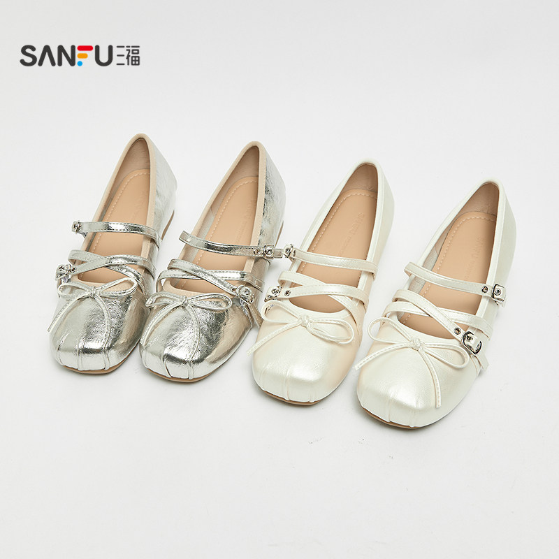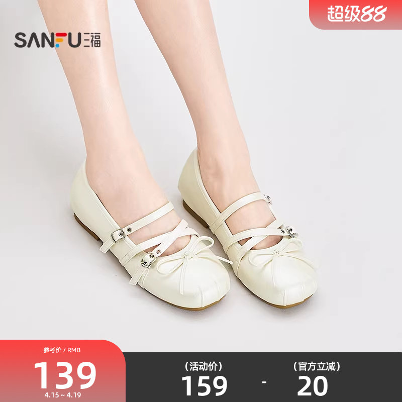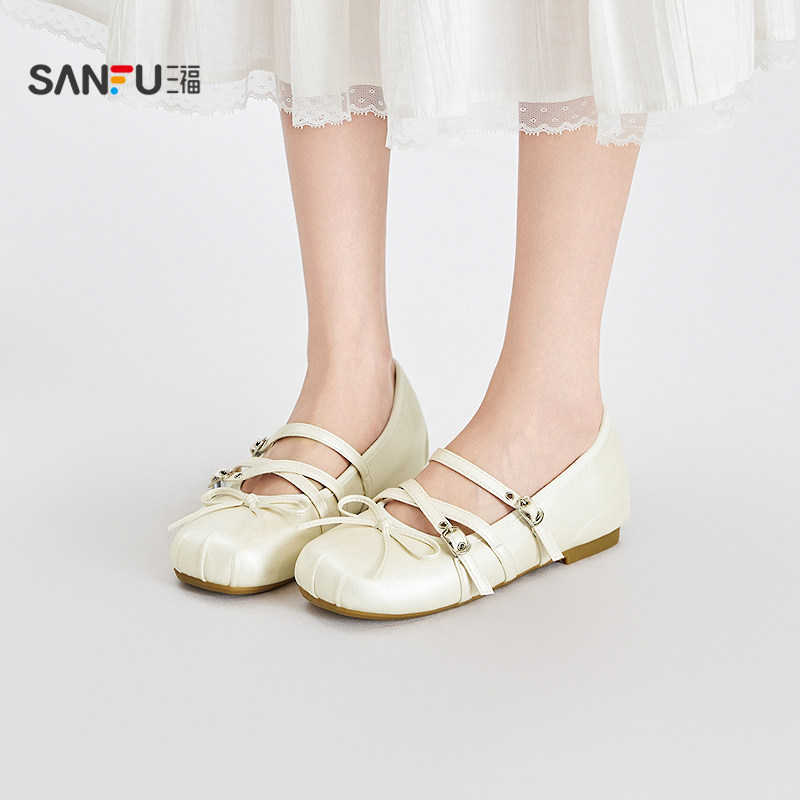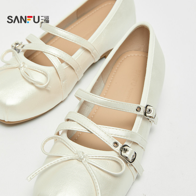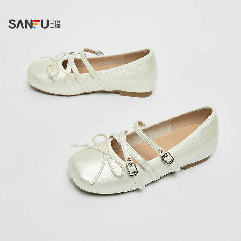 📚 三福女单鞋夏季果系少女双带扣蝴蝶结浅口芭蕾舞女鞋855179