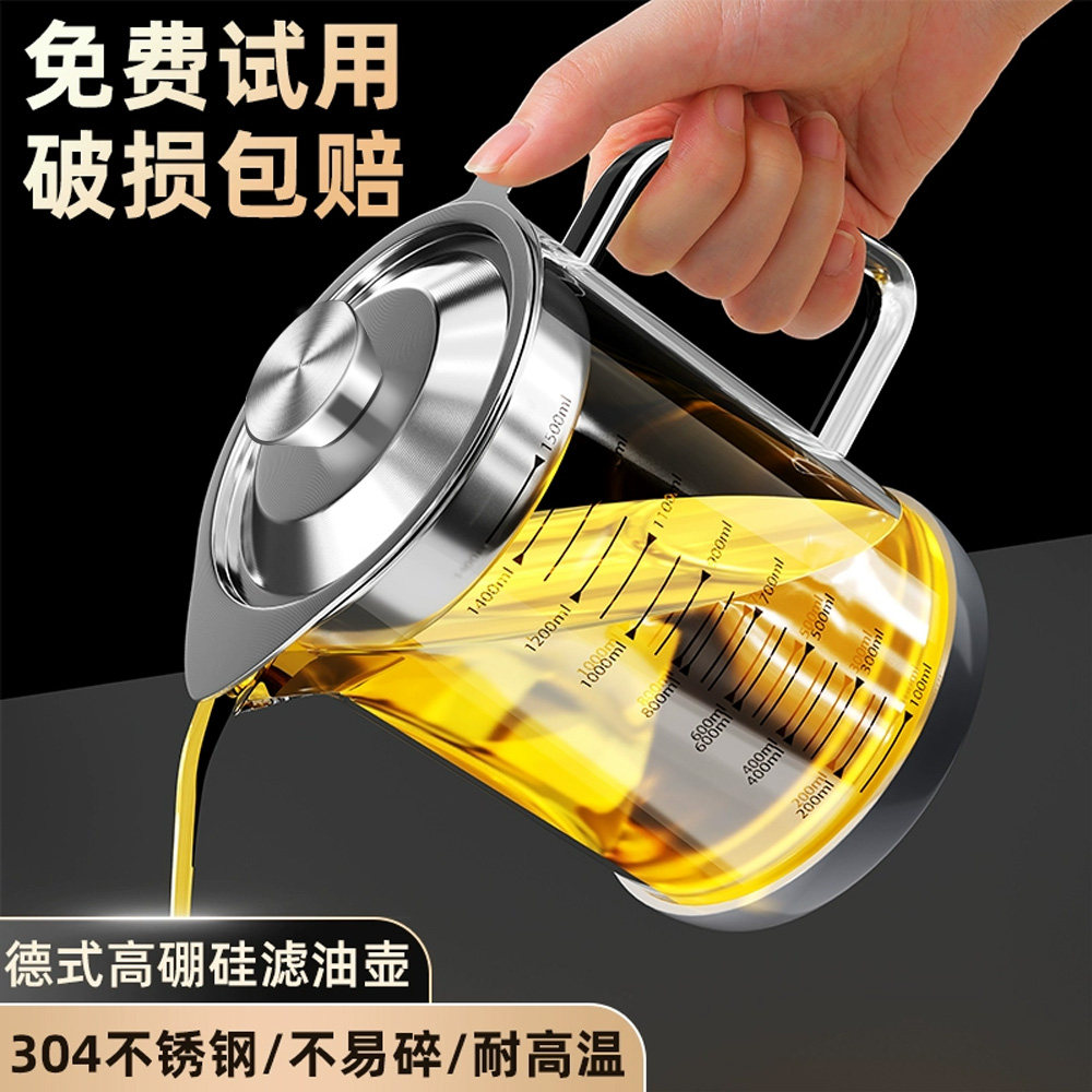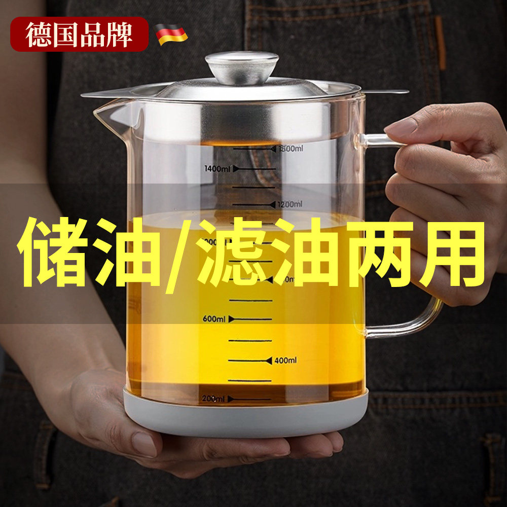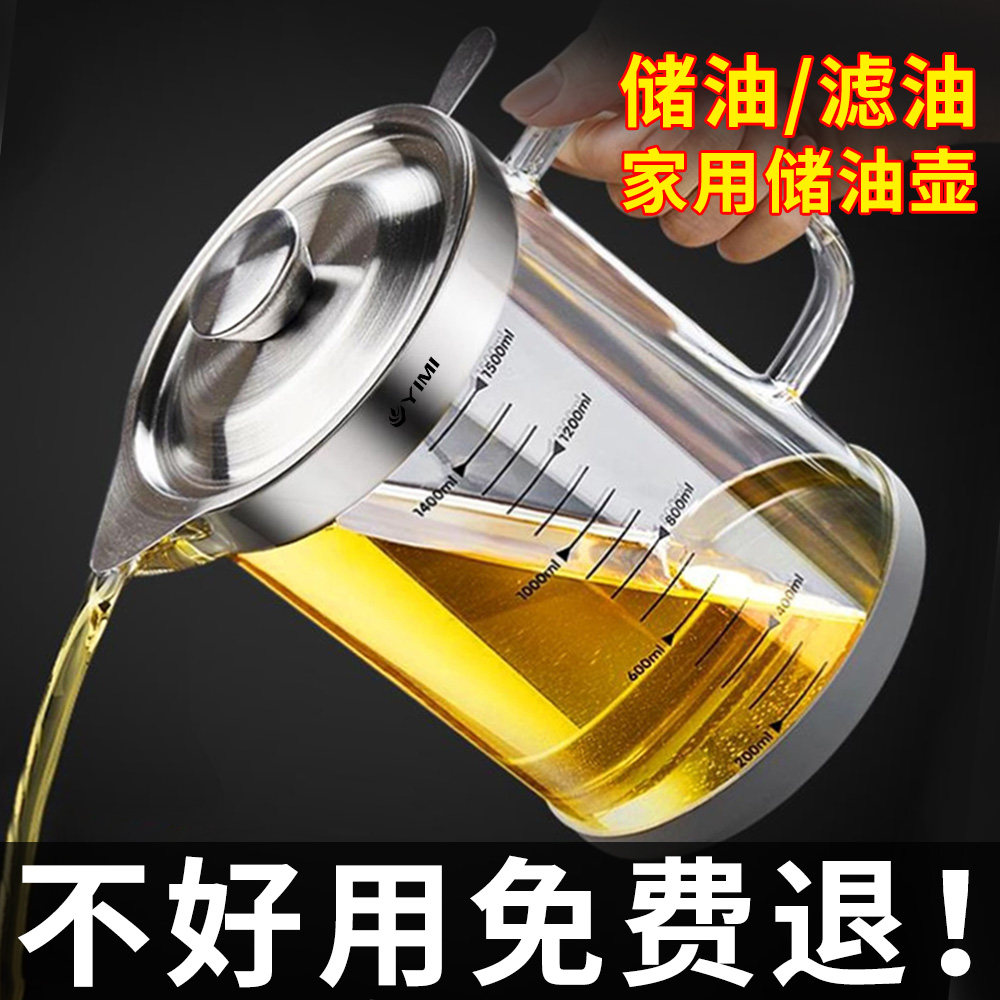 📚 玻璃油壶厨房家用不锈钢316食品级大容量带过滤网猪油储存罐油罐