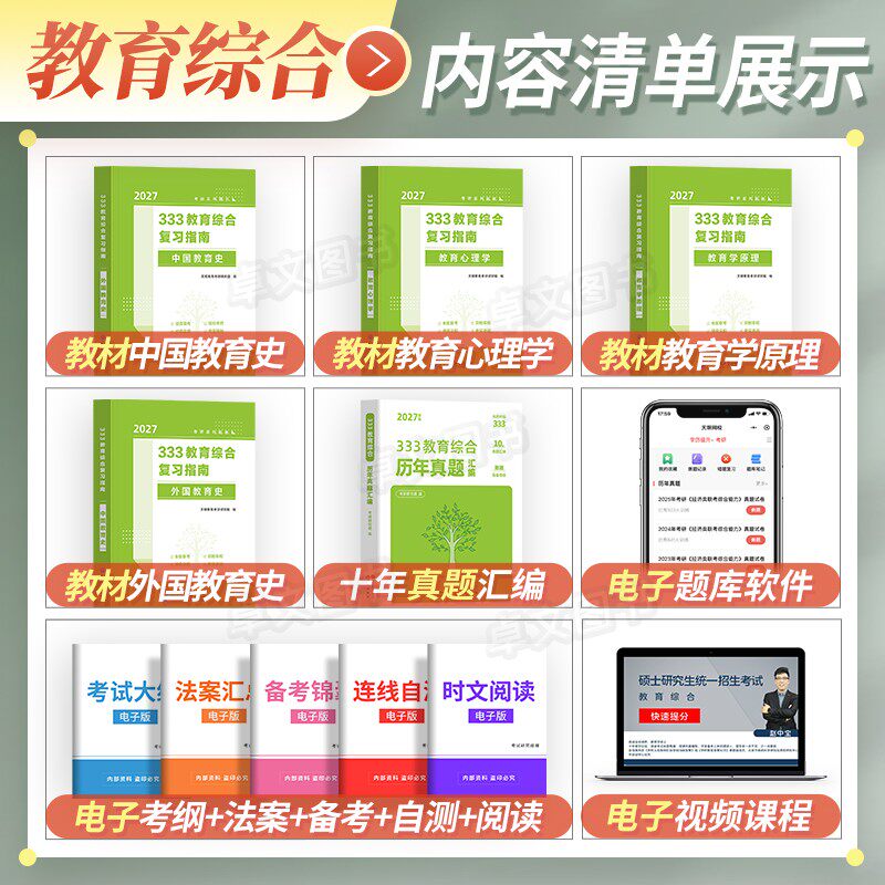 📚 新版2027年333教育综合考研复习指南教材历年真题库刷题试卷统考资料用书英语二+政治外国中国教育史教育学原理心理学大纲网课2026