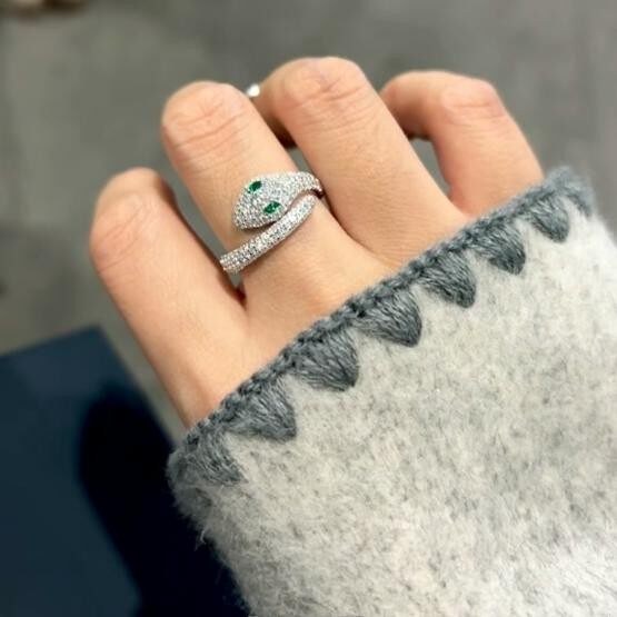 📚 925银绿眼灵蛇开口可调节手镯女个性轻奢气质蛇形耳环戒指蛇手镯
