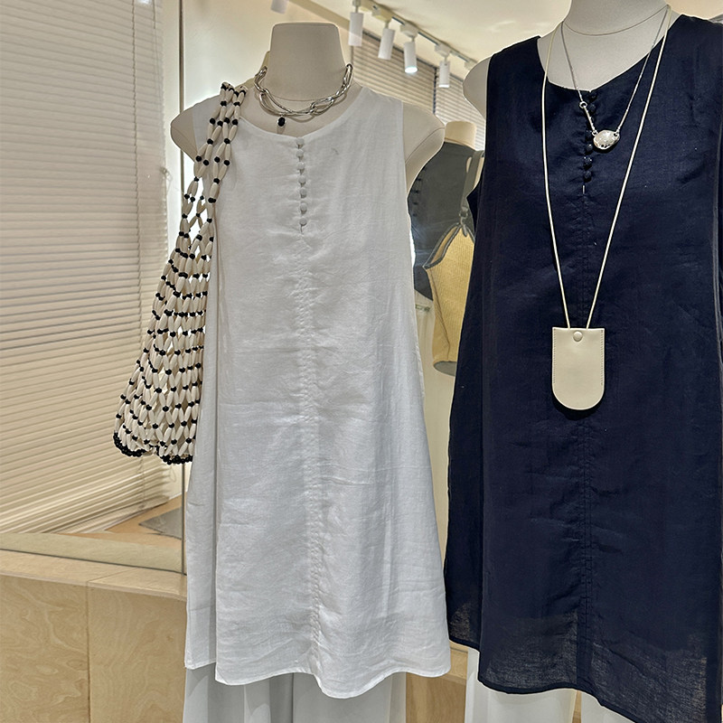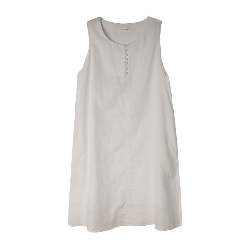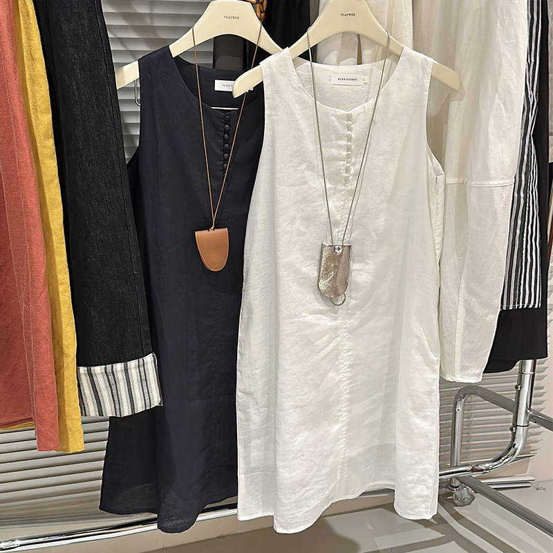 📚 好看苎麻无袖连衣裙女简约 轻国风气质棉麻短裙a字显瘦宽松背心裙