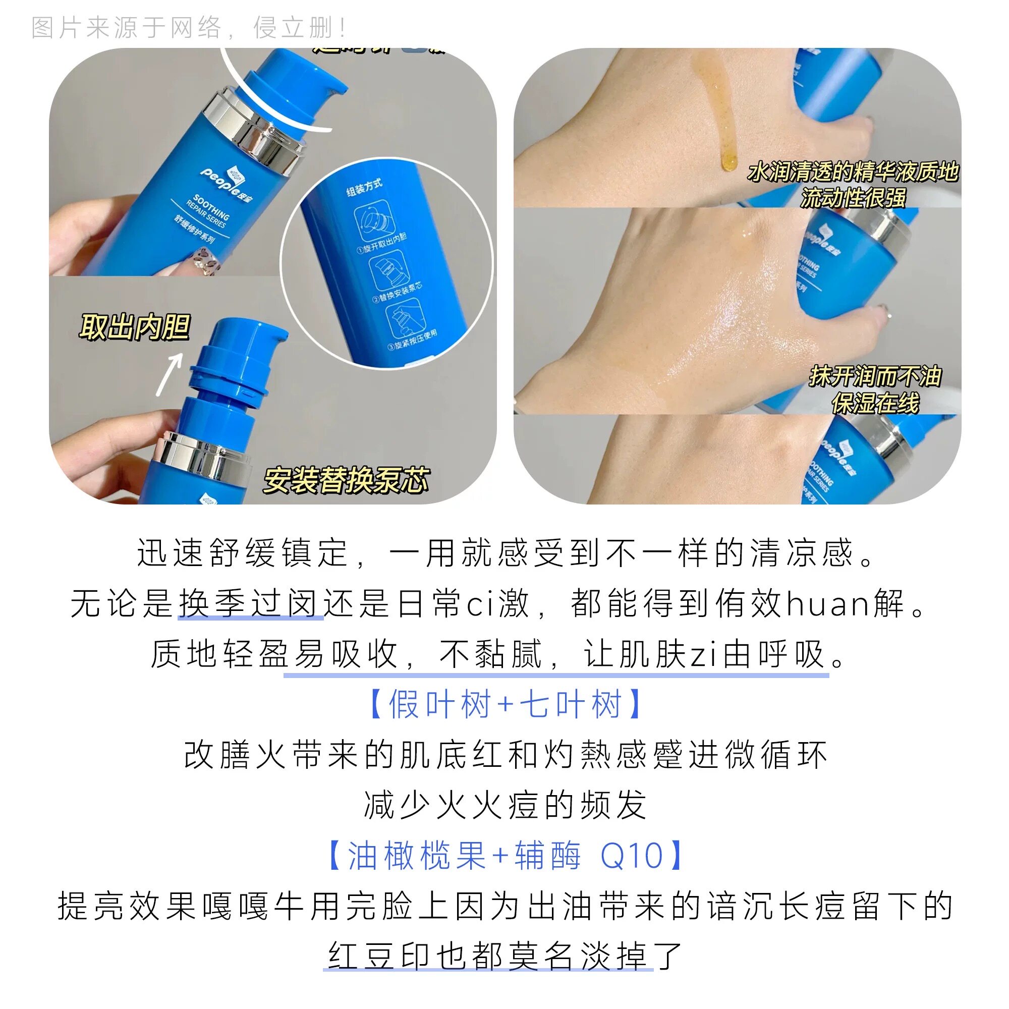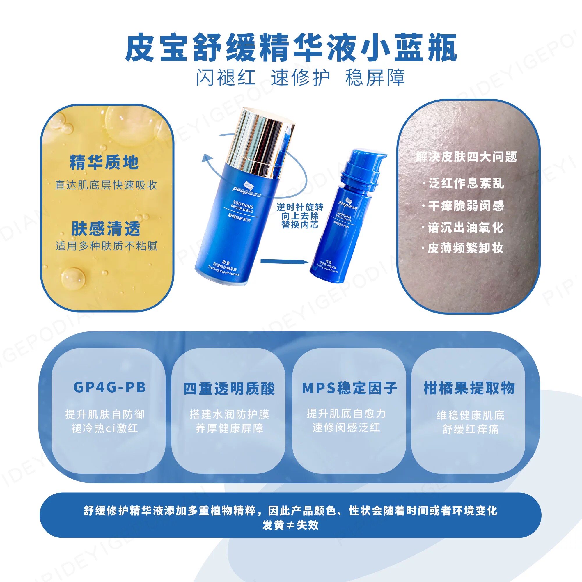 📚 新版!皮宝舒缓修护精华液30ml小蓝瓶油橄榄屏障修护敏感泛红油皮