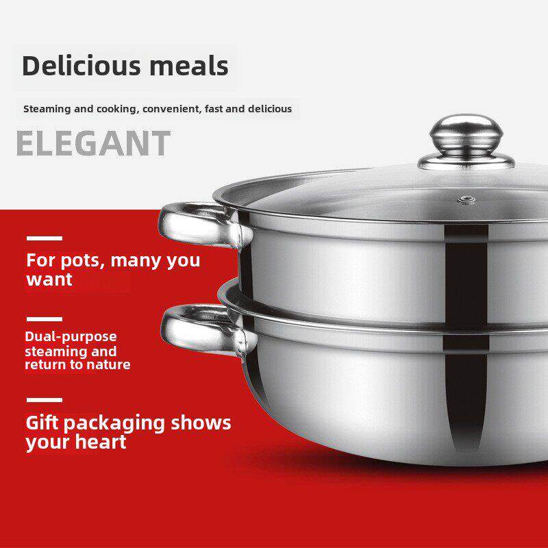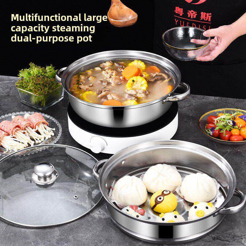 📚 厂家直供 粤帝斯不锈钢双层蒸锅28cm加厚多功能三层汤蒸锅 礼品