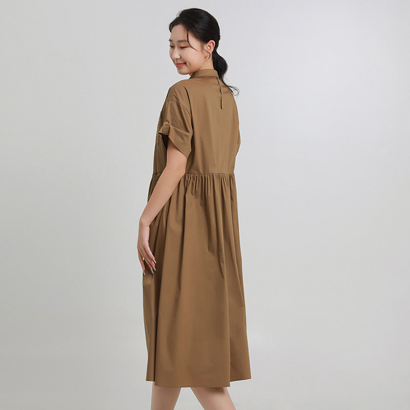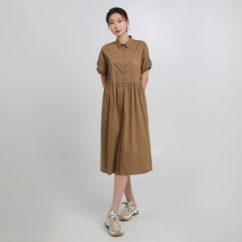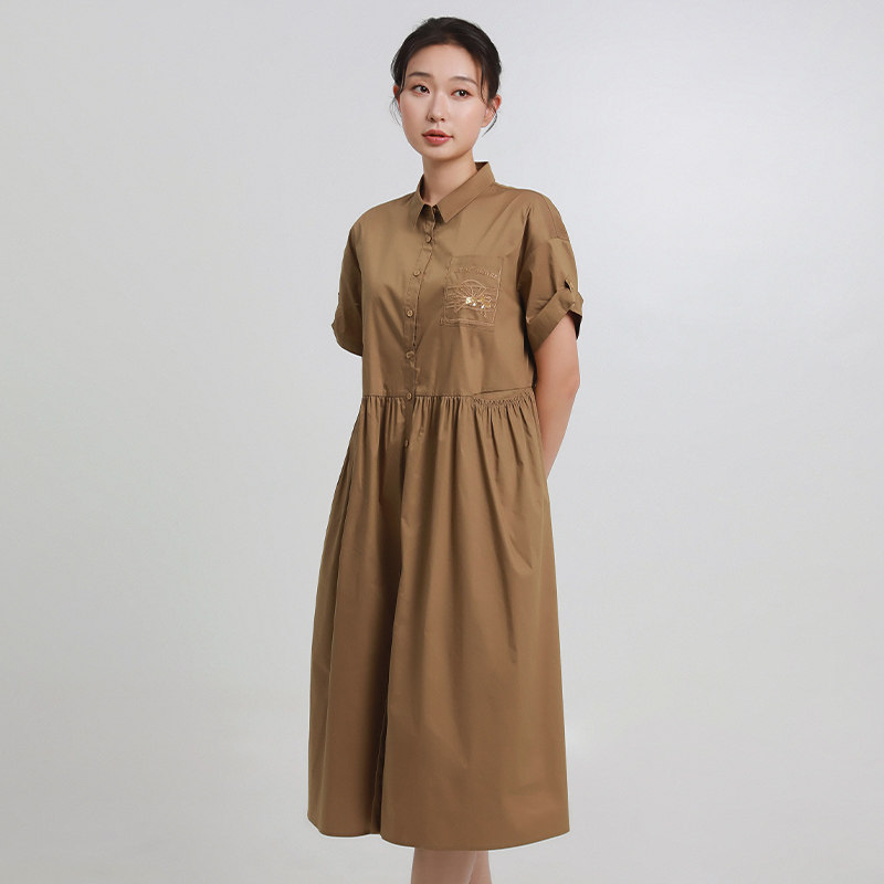 📚 [专柜同款]Yifini/易菲美拉德焦糖色翻领衬衫裙女夏装新款连衣裙