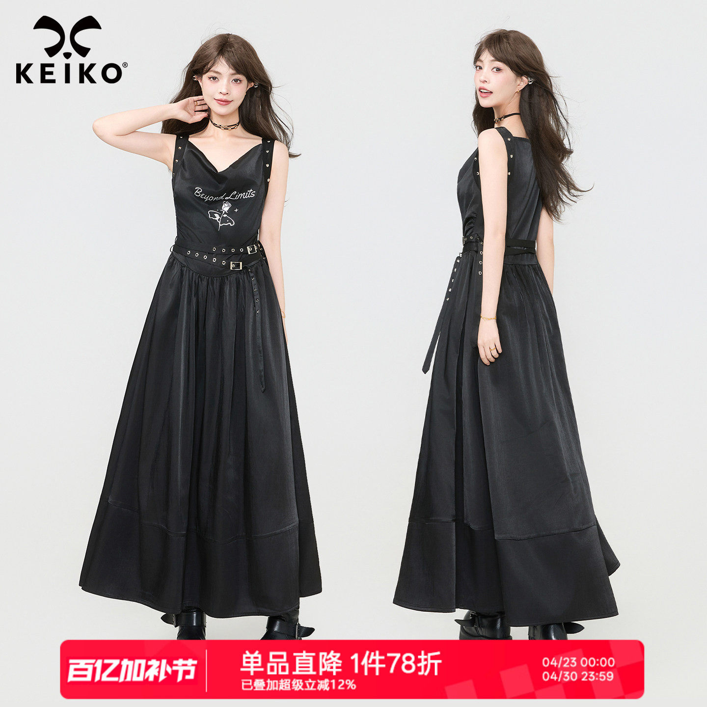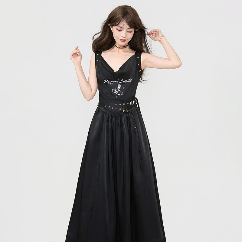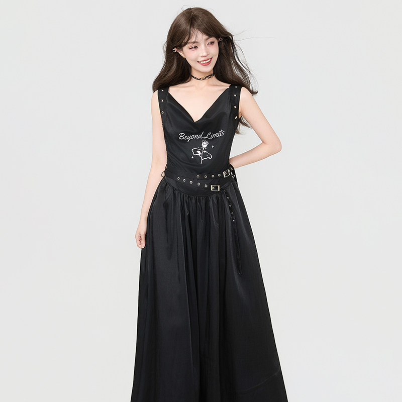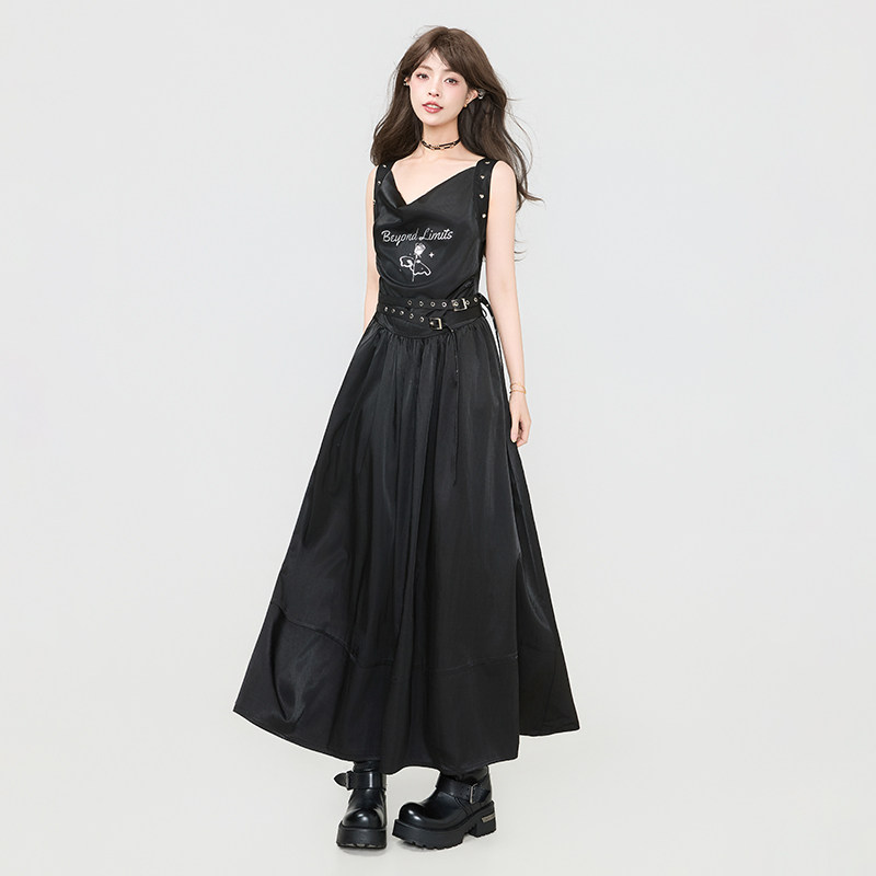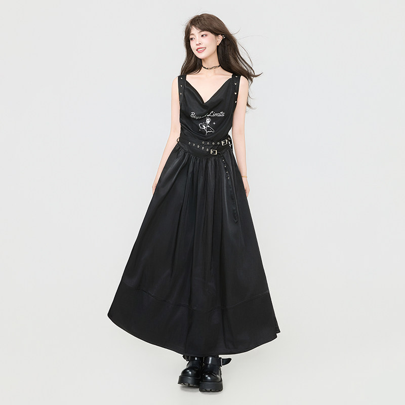 📚 KEIKO 诗性暗黑风柔顺缎感无袖连衣裙夏季高级感荡领吊带背心长裙