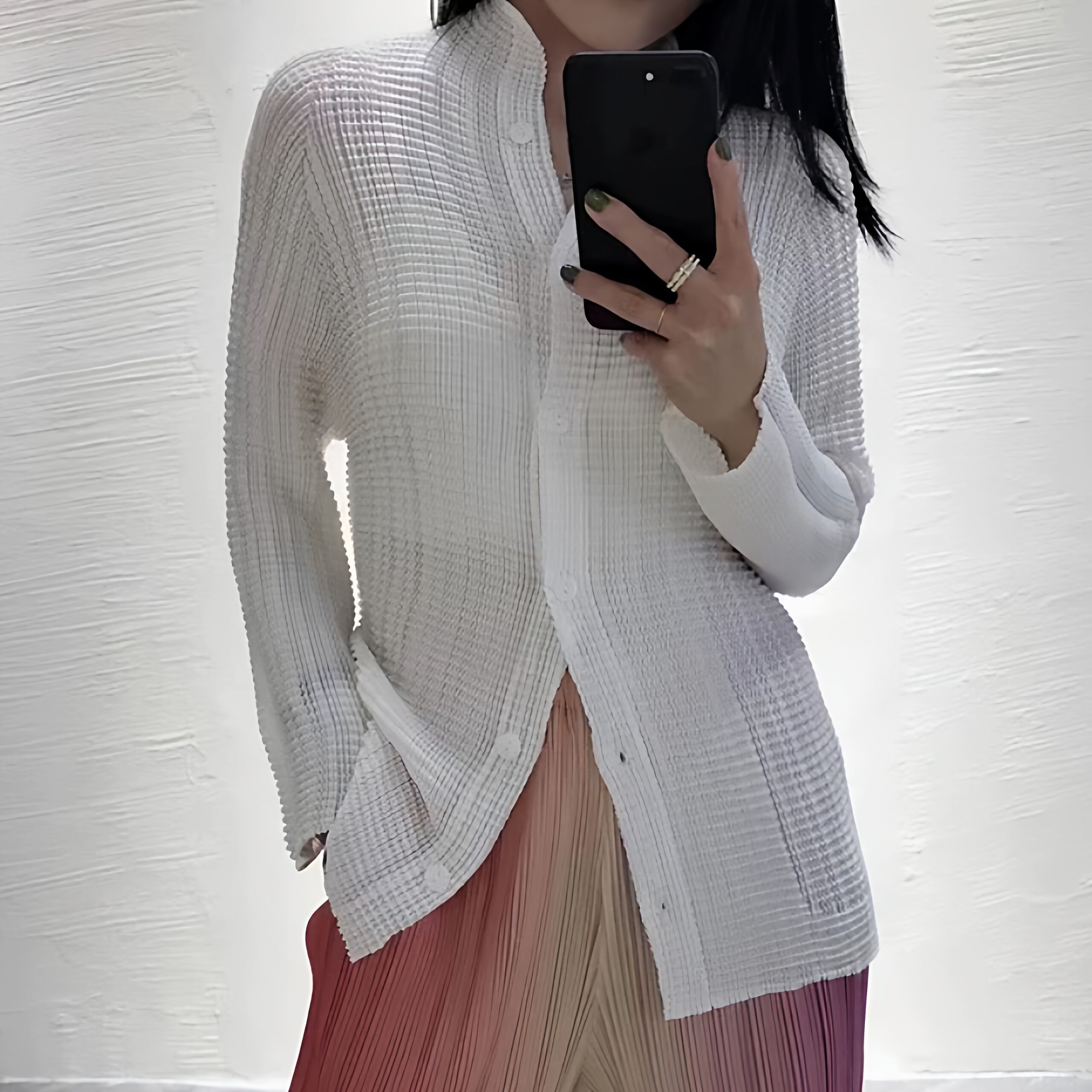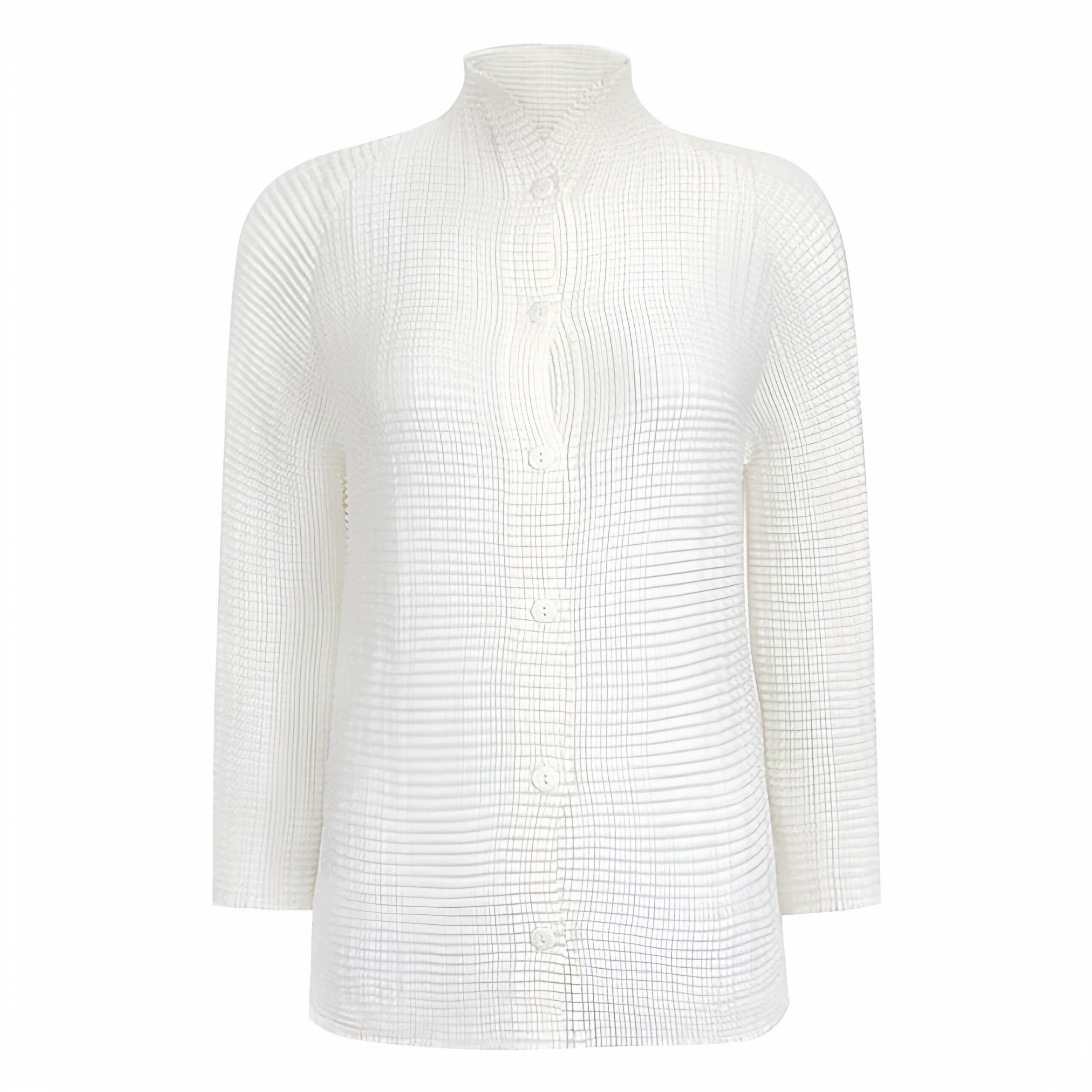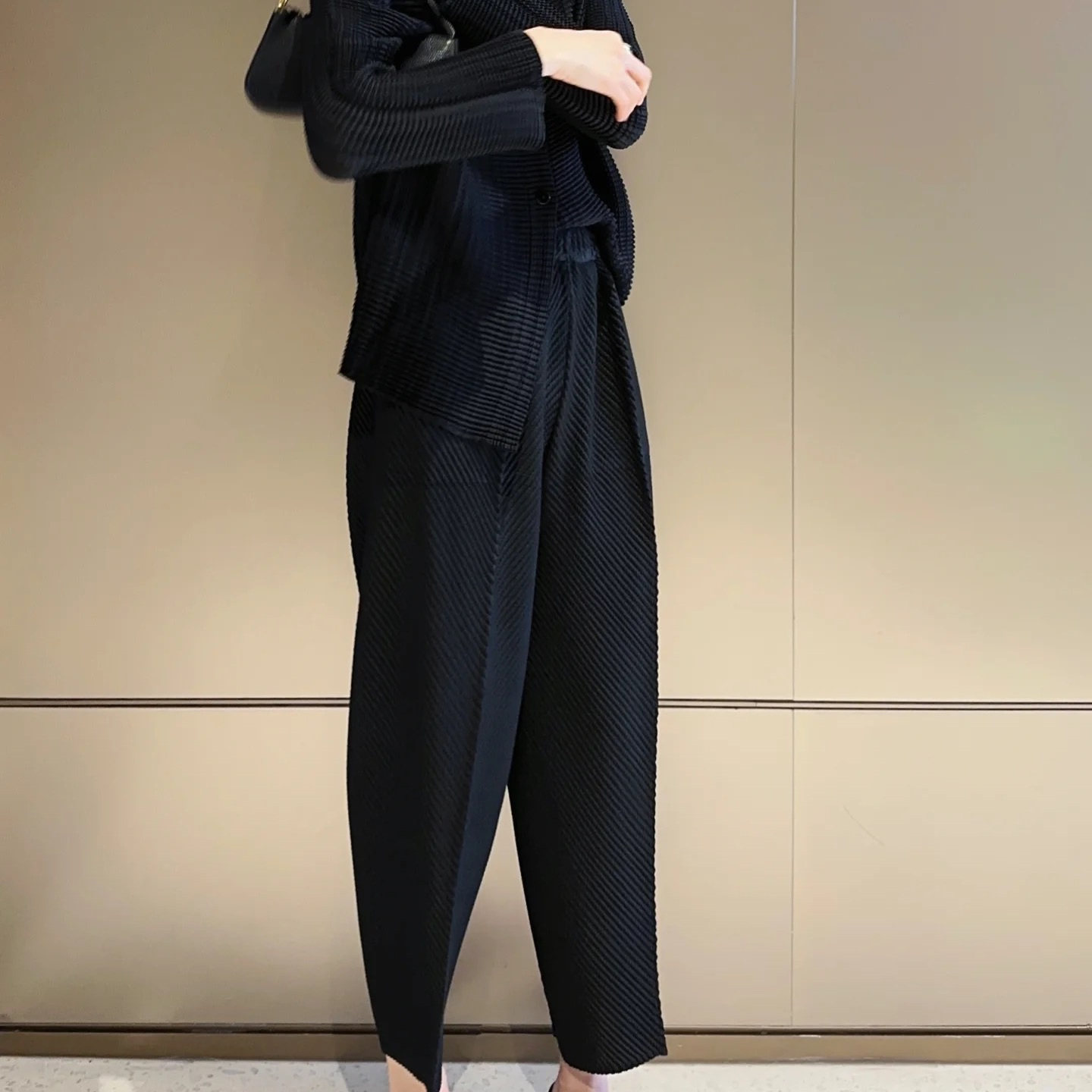 📚 三宅褶皱一生秋季新款短外套女纯色休闲圆领长袖褶皱单排扣开衫