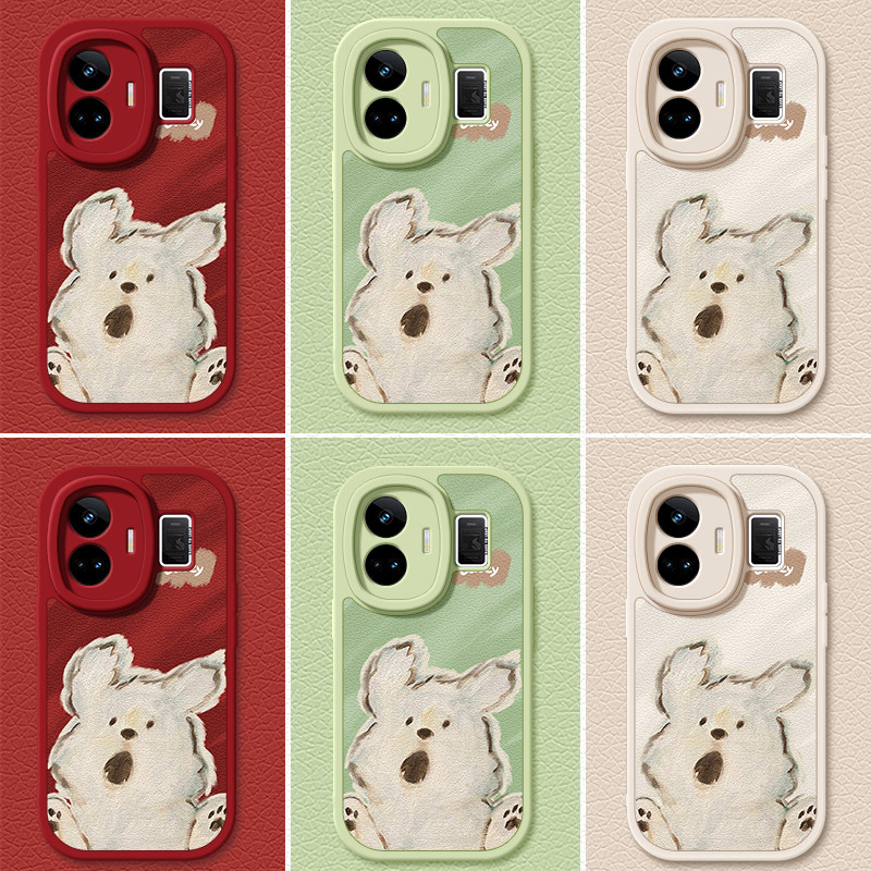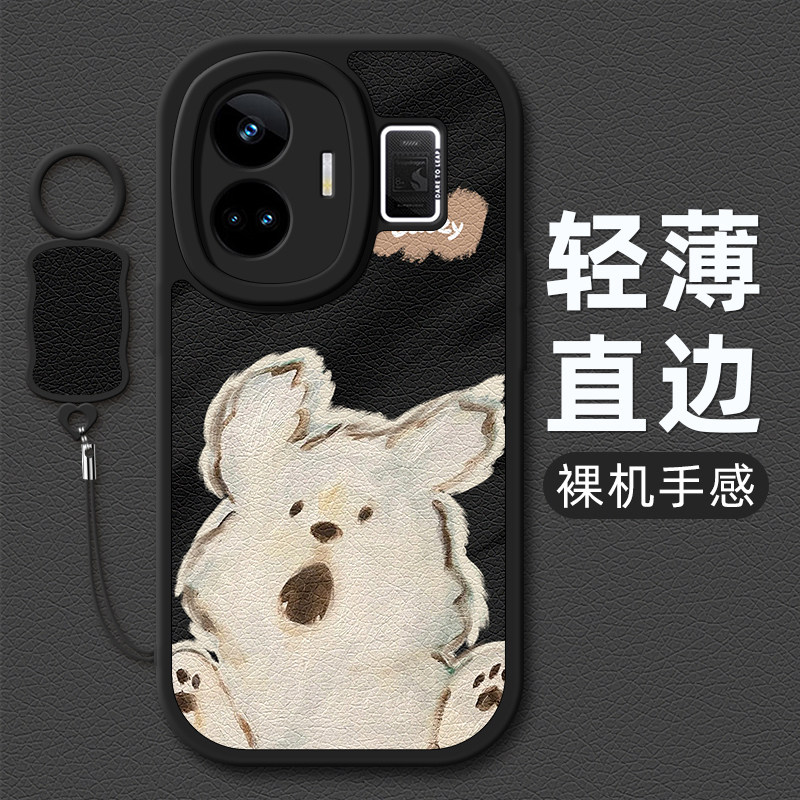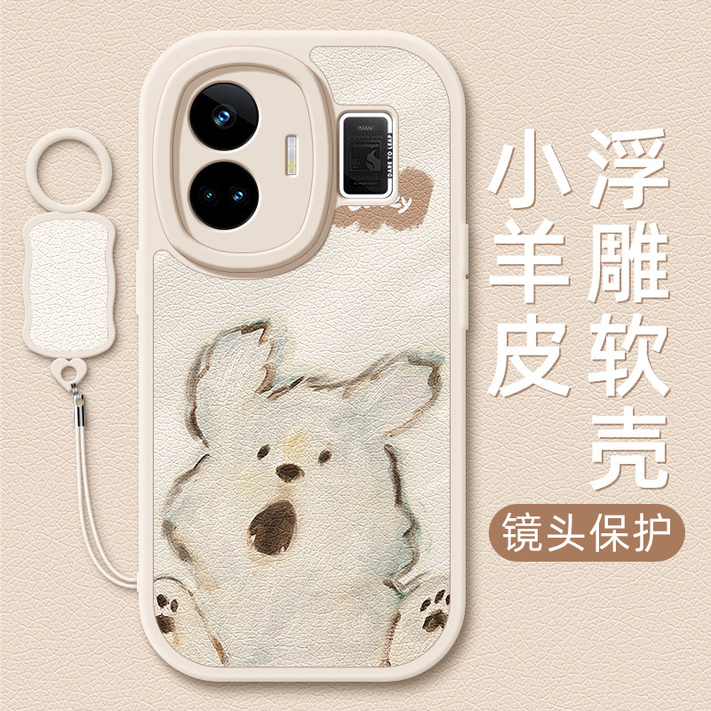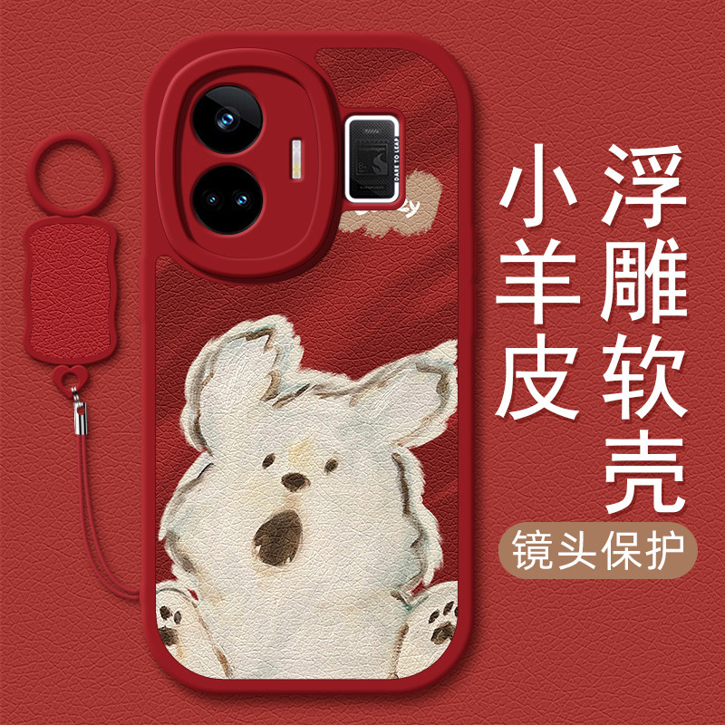 📚 惊讶小狗适用realme真我GT6手机壳realmeGTneo5小羊皮realmeGT5pro新款GTneo6SE/3/2腕带斜挎挂绳11pro+女