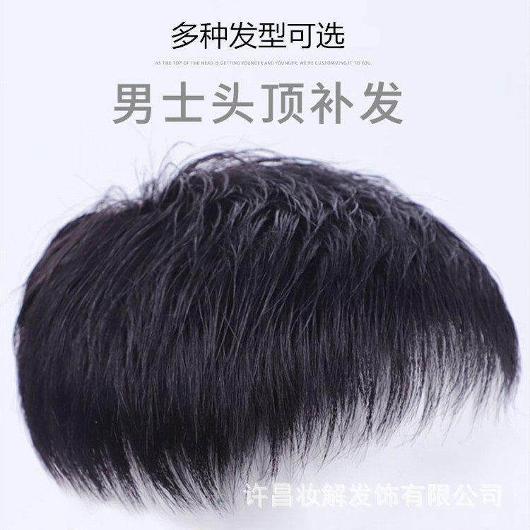 📚 男士假发片头顶隐形补发块秃顶地中海男士前额补发自然真发假发片