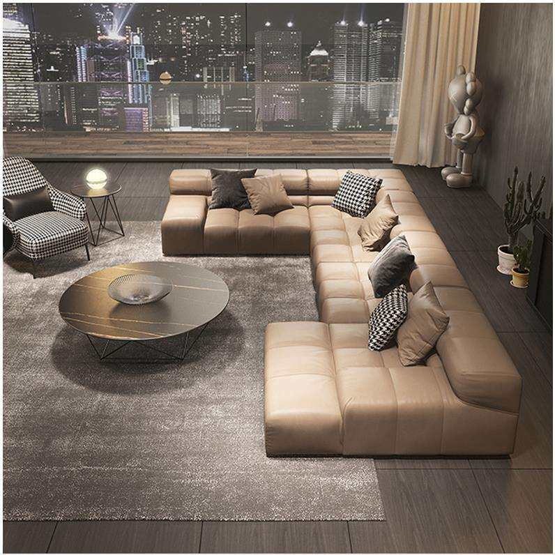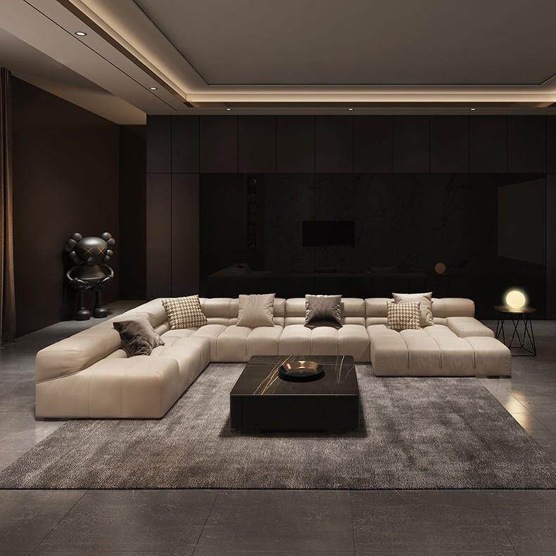 📚 意式极简现代组合客厅小户型大平层别墅区样板房大厅转角休闲沙发