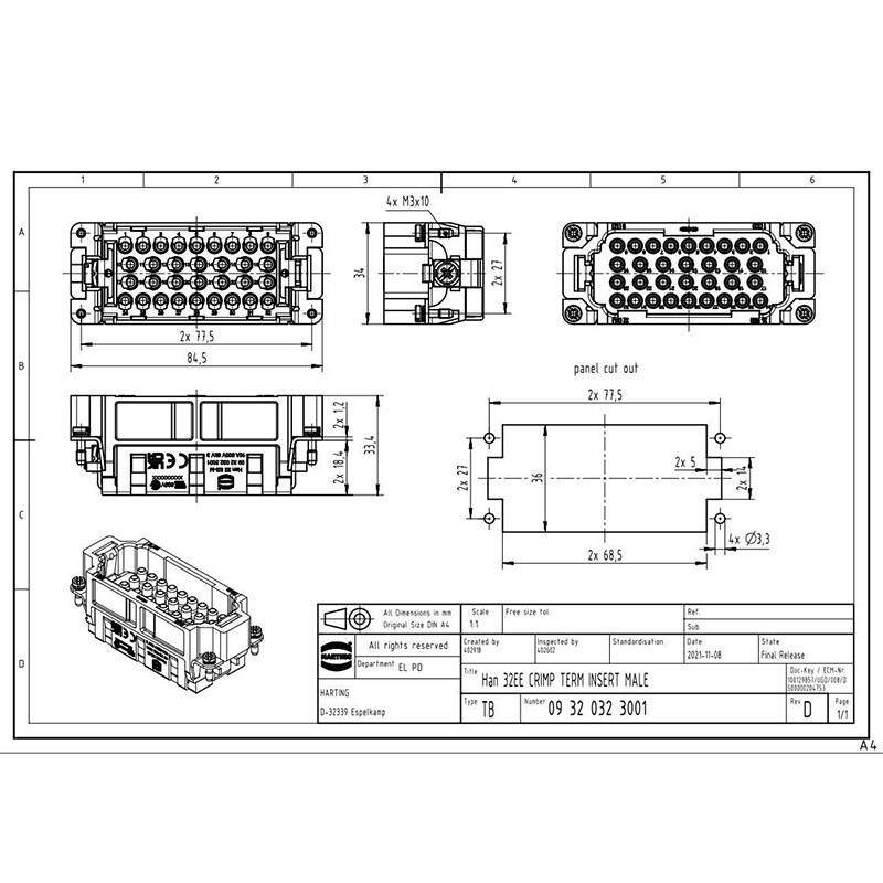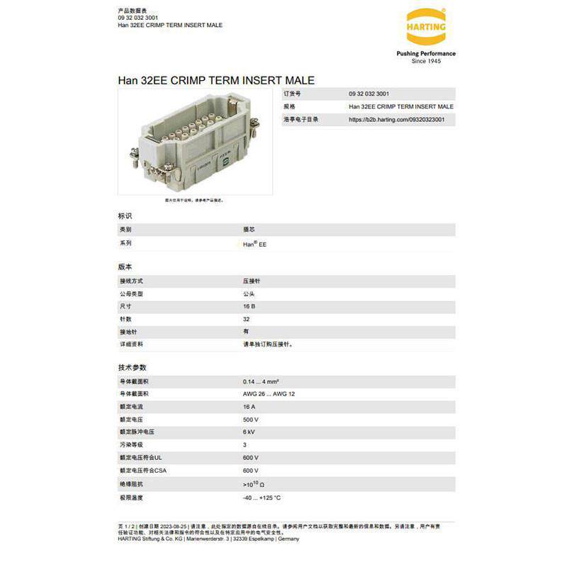 📚 09320323001 HARTING 哈丁 32针重载连接器 Han 32 EE-M-C 原装