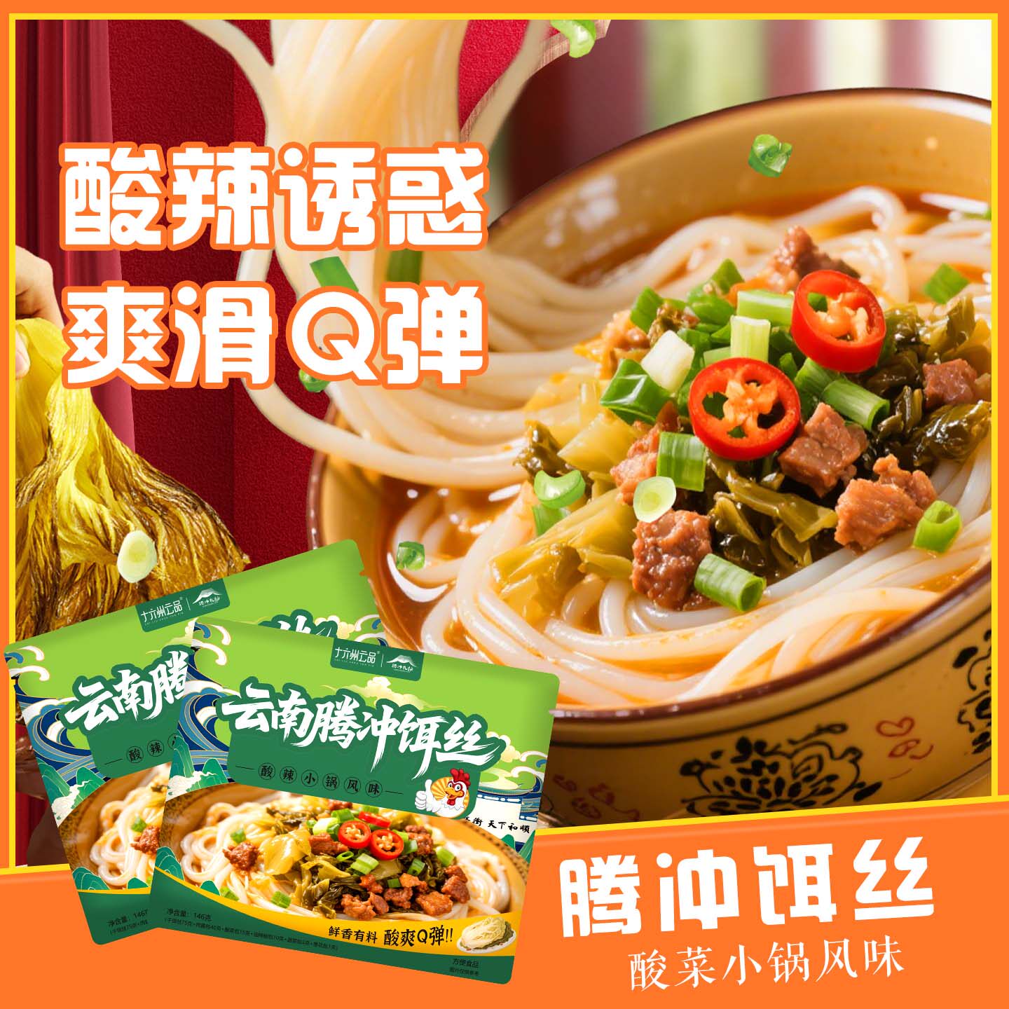 📚 云南腾冲饵丝方便冲泡速食松茸鸡汤风味*2包酸辣小锅风味*2包