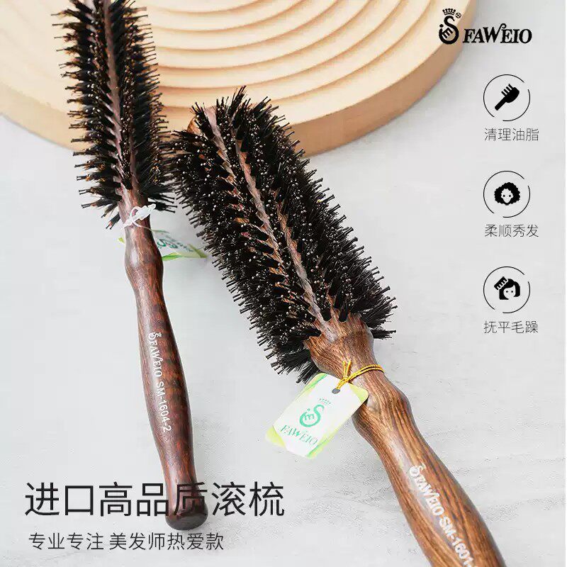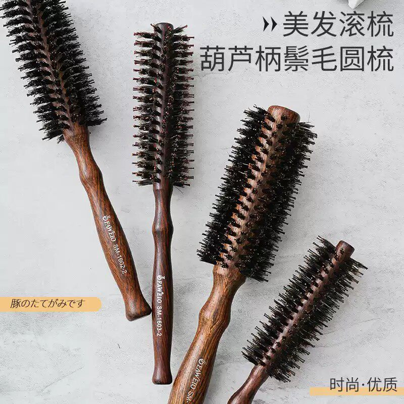 📚 台湾发葳鹅滚梳小号美发猪鬃毛圆梳子滚梳理发店发廊家用大号滚梳