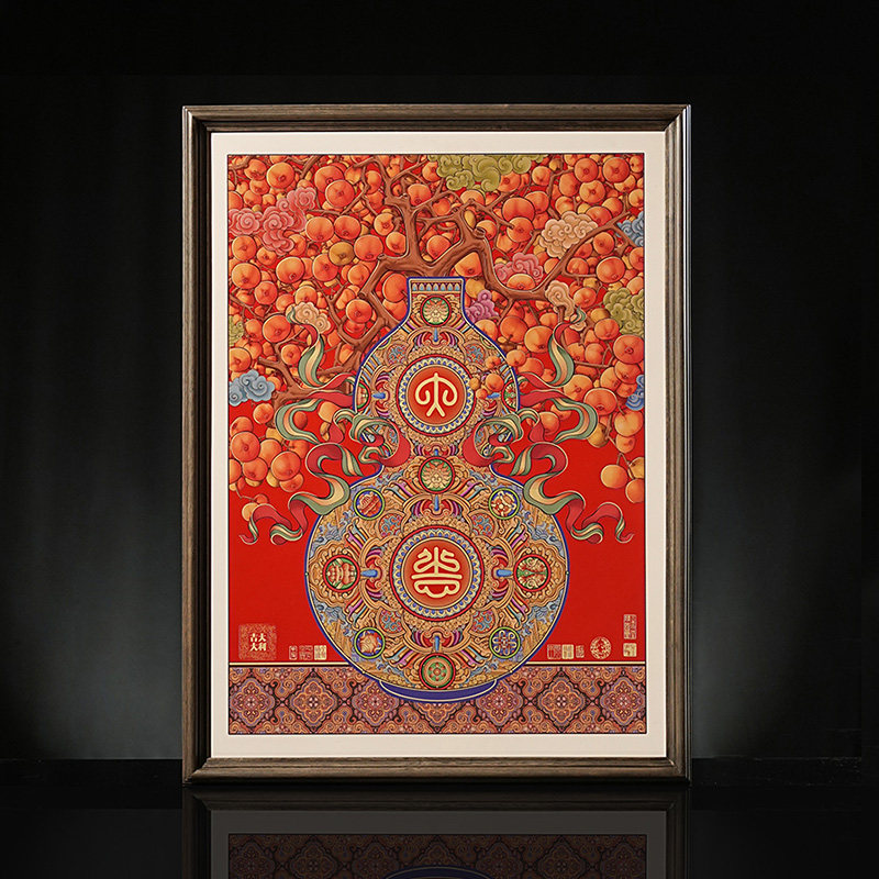 📚 新中式铜画玄关装饰画正对门葫芦挂画中国红玄关画福禄客厅风水画