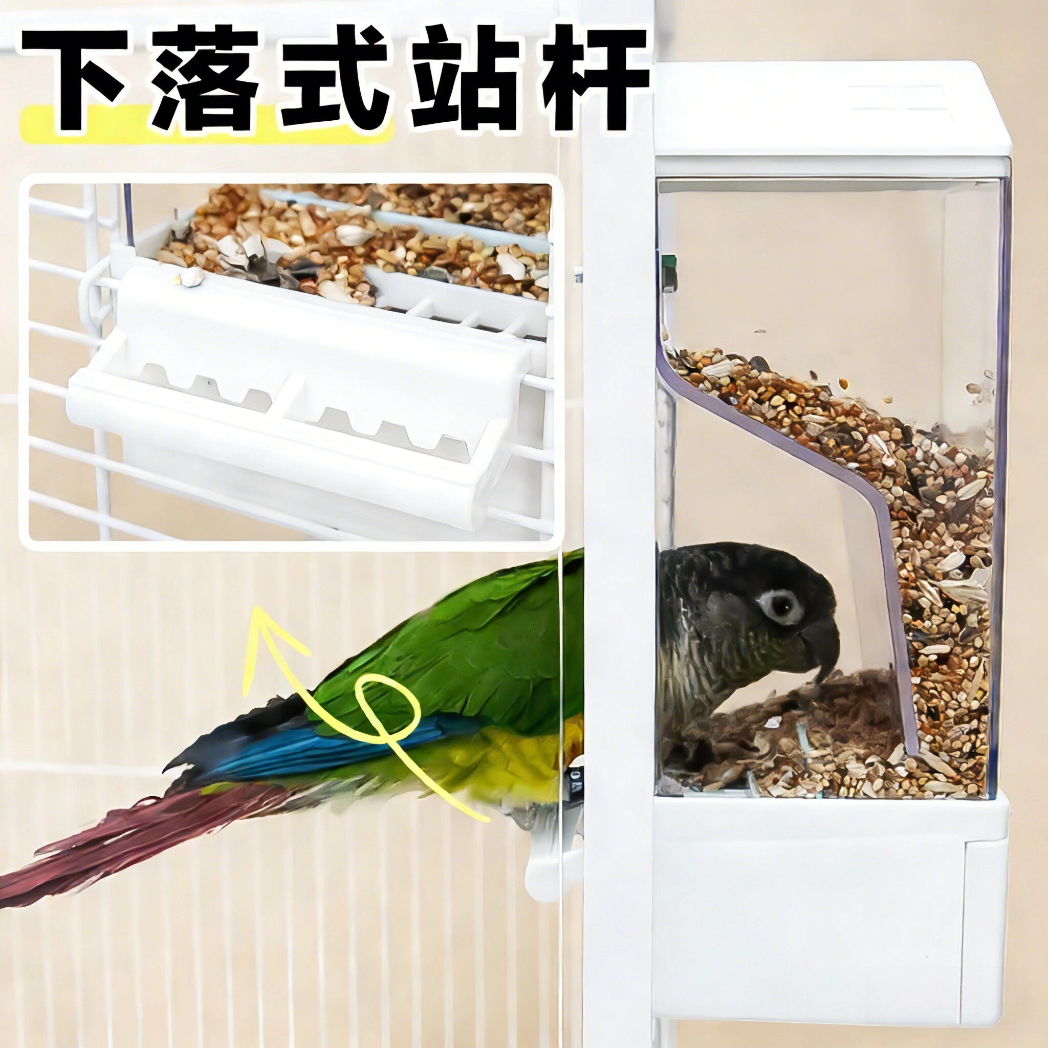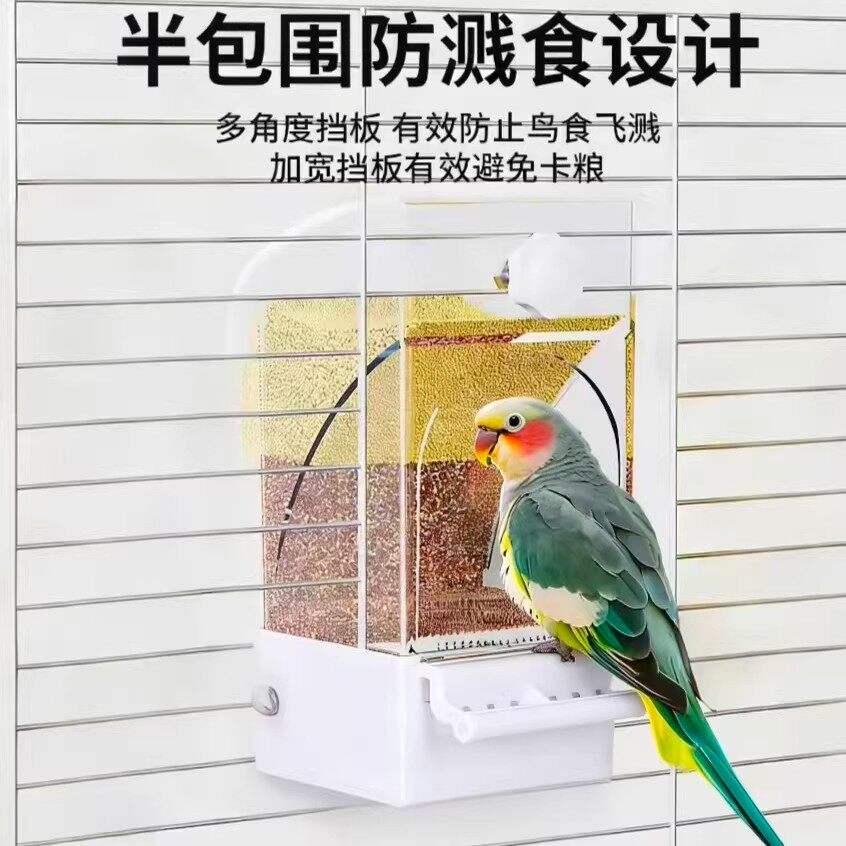 📚 鹦鹉自动喂食器一体机谷壳分离食盒鸟用挂式防溅防撒食槽下料器