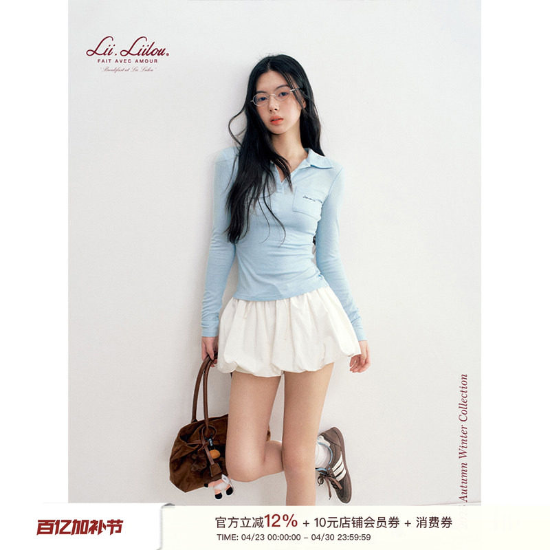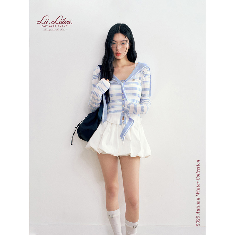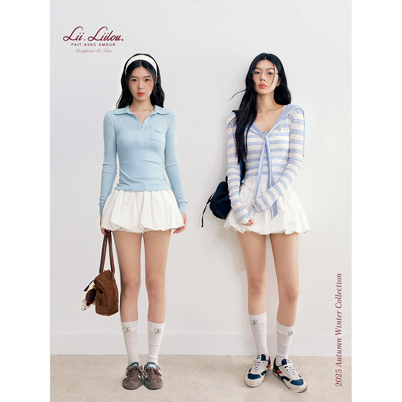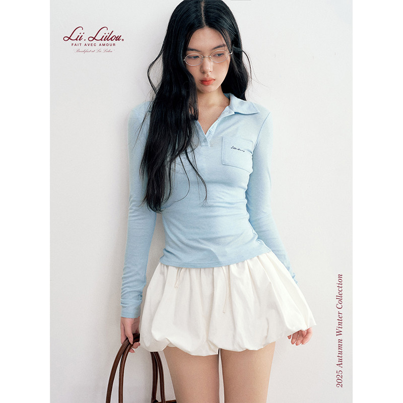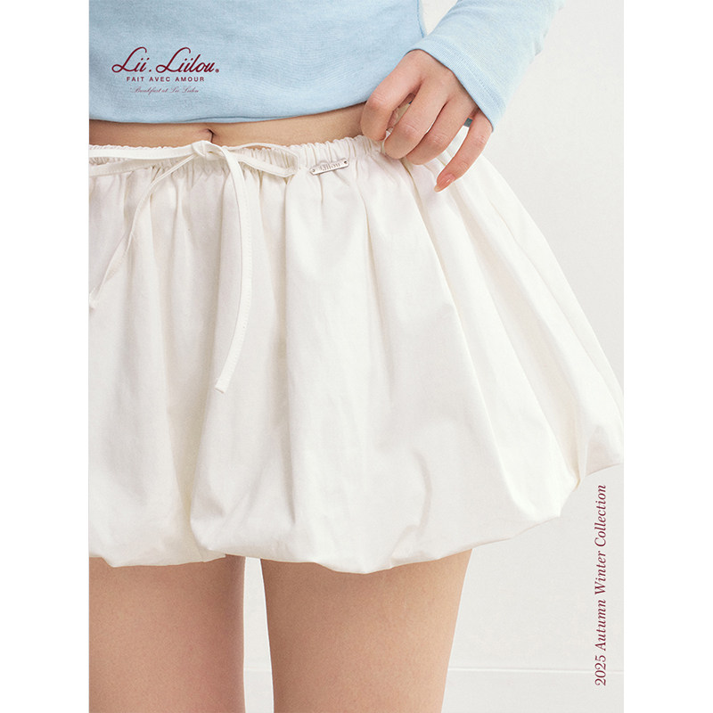 📚 Liilou Bubble girl 廓形感 挺阔高腰抽绳系带花苞短半裙