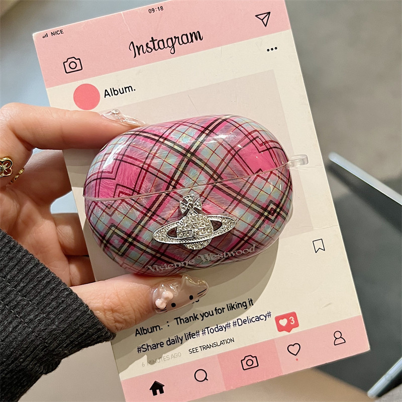 📚 创意ins风复古格子适用free clip保护套土星西太后freebuds6i5i无线蓝牙耳机壳freebudsPro3Pro4防摔盒se2se3