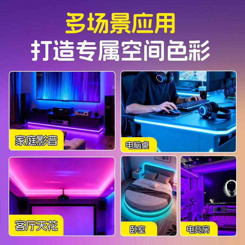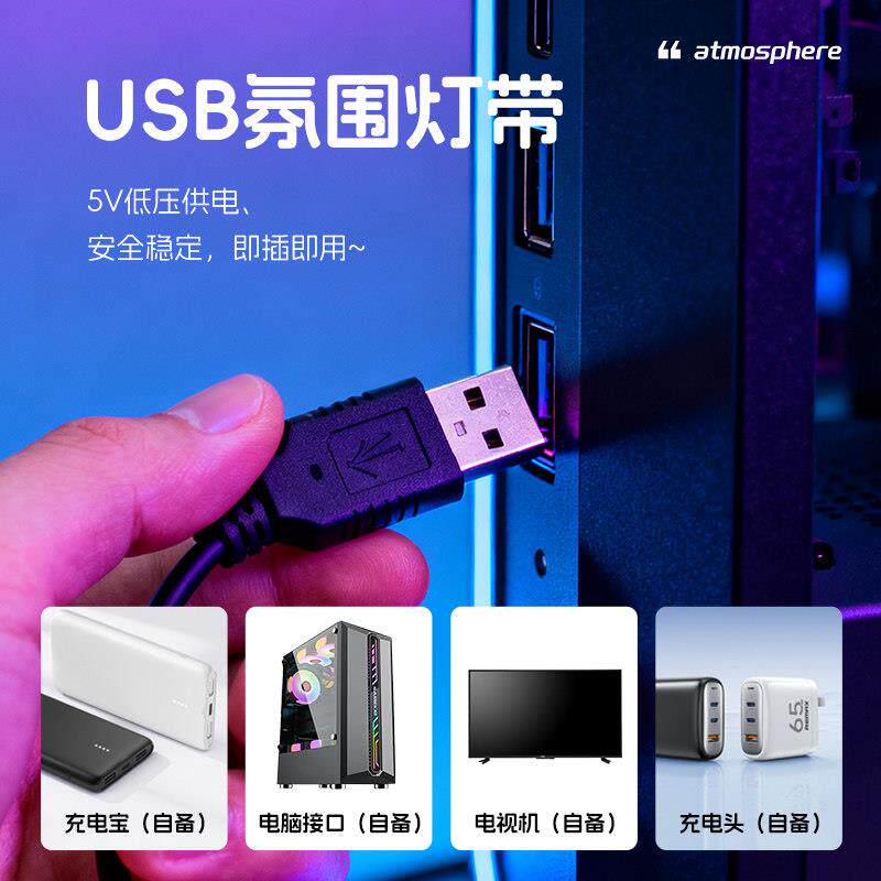 📚 电竞房氛围USB灯带免安装自粘低压5v宿舍桌面电脑桌显示器led灯条