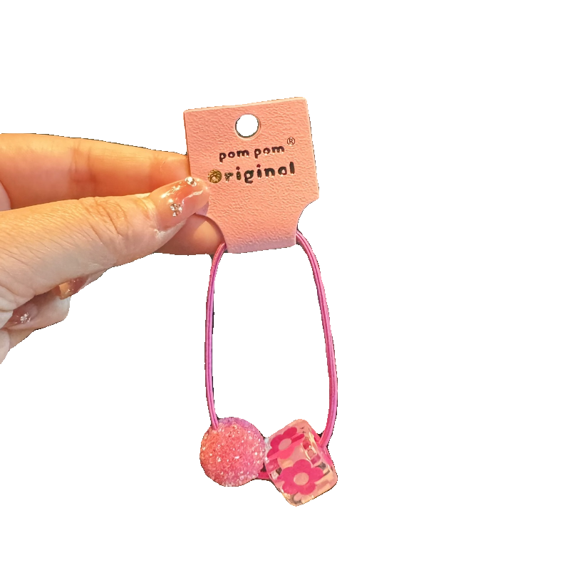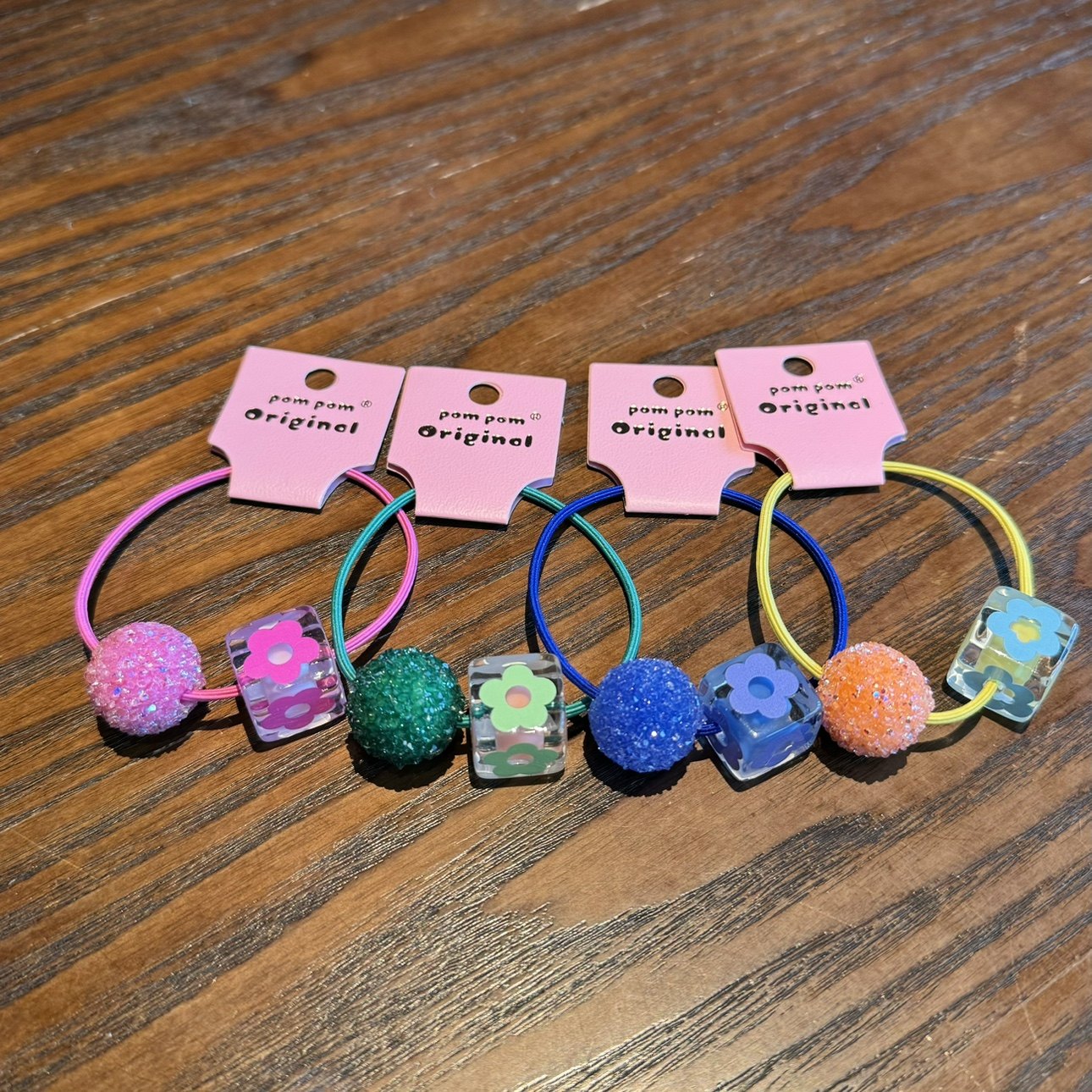 📚 【清仓】韩国Pom pom发饰彩色砂糖球方块透花朵爱心皮筋头绳发圈