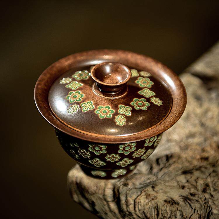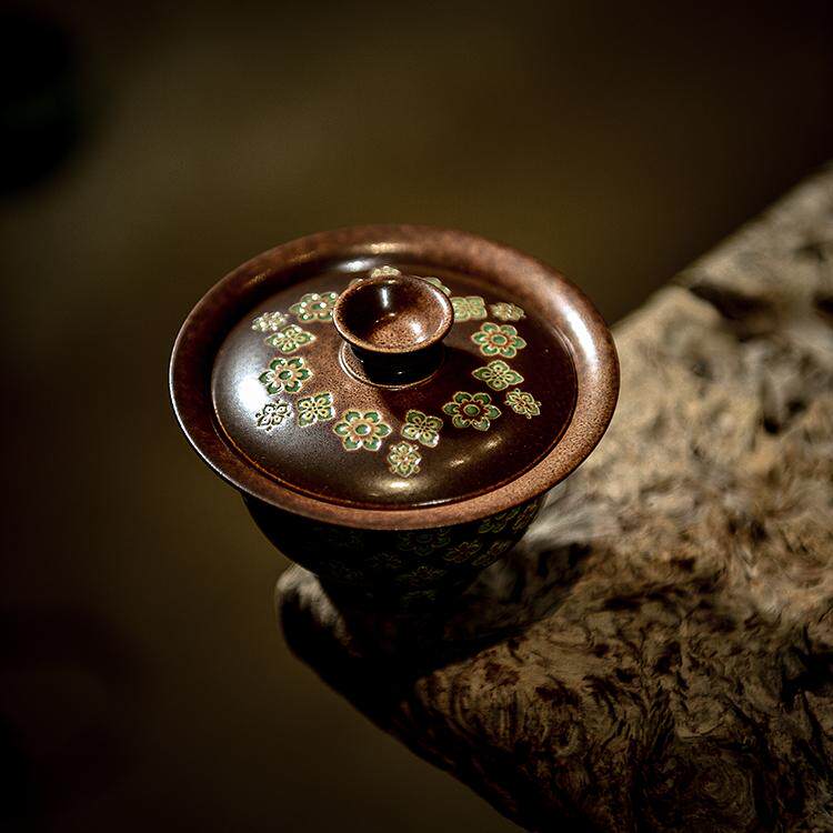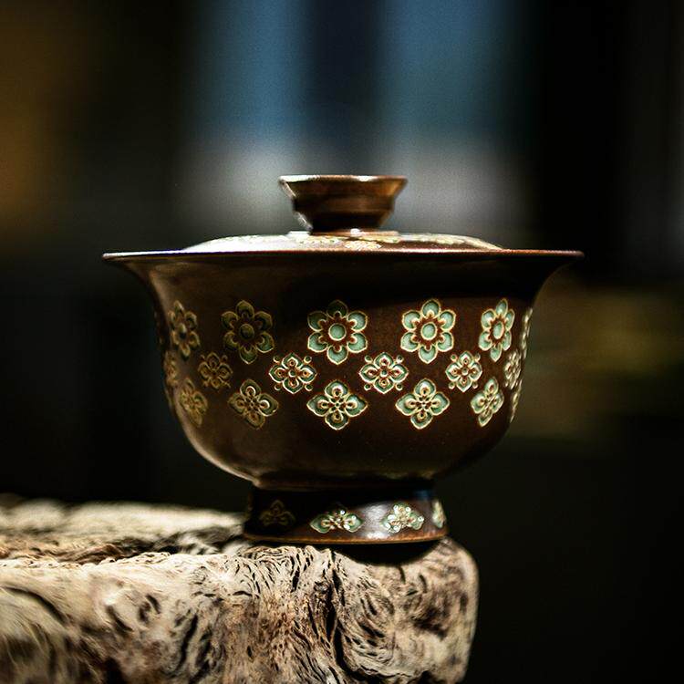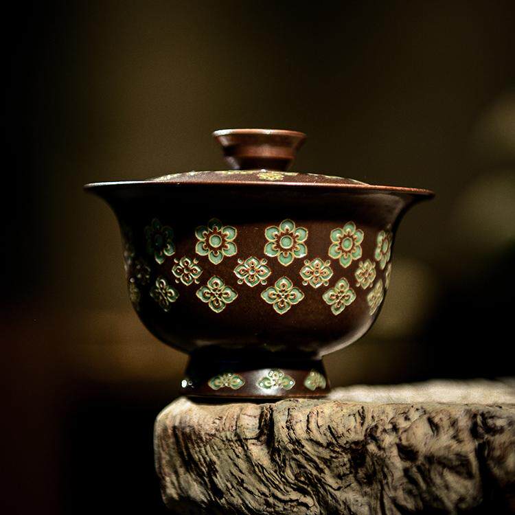 📚 瓷茶记李斌大唐宝相花元宝盖碗手工茶器非遗茶具薄胎盖碗不烫手
