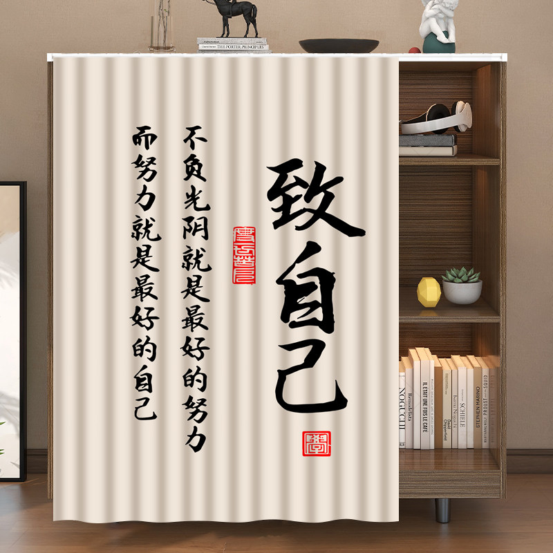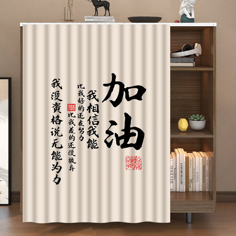 📚 励志文字柜子布帘遮挡帘魔术贴免打孔书架书柜防尘帘杂物遮丑帘子