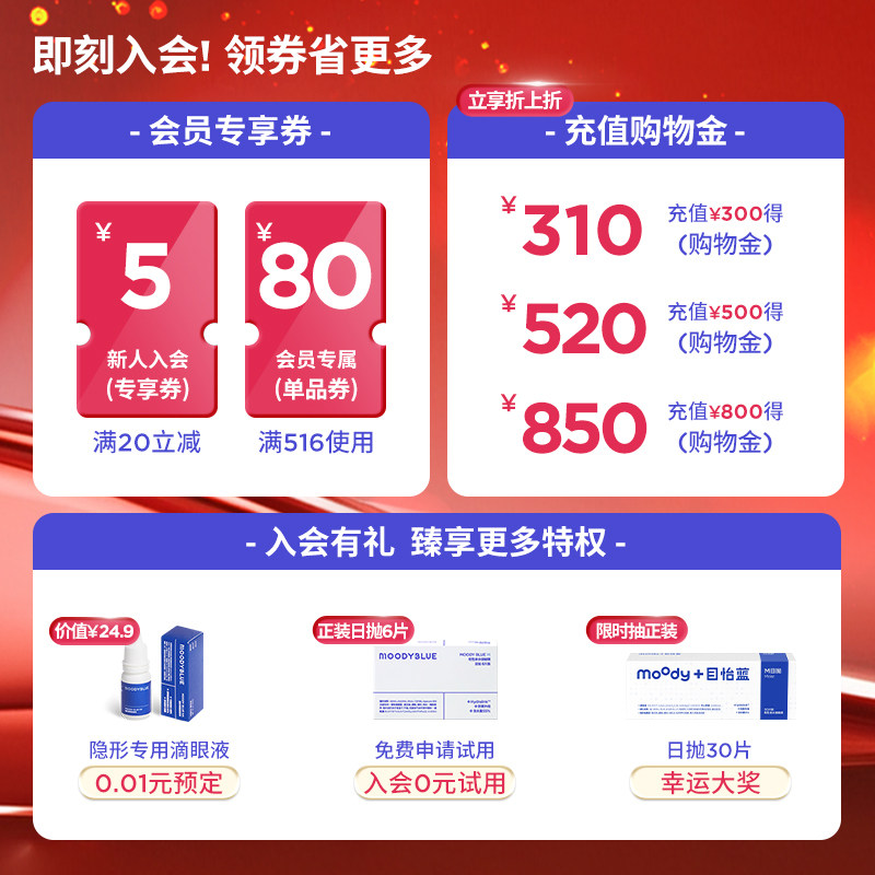 📚 MOODYBLUE目怡蓝日抛隐形眼镜10/30/60片新手运动高含水近视官方