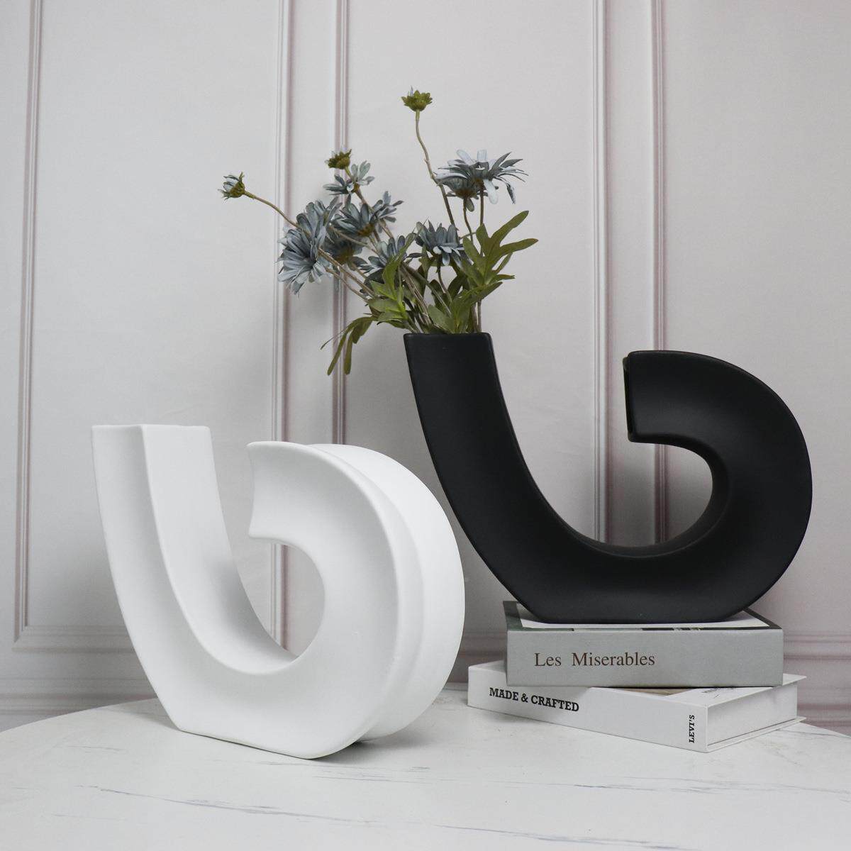📚 现创抽象音符关摆件白色代黑色哑光意树脂玄-电视柜装饰