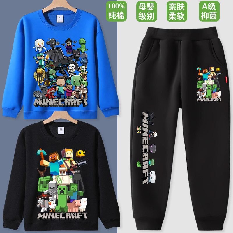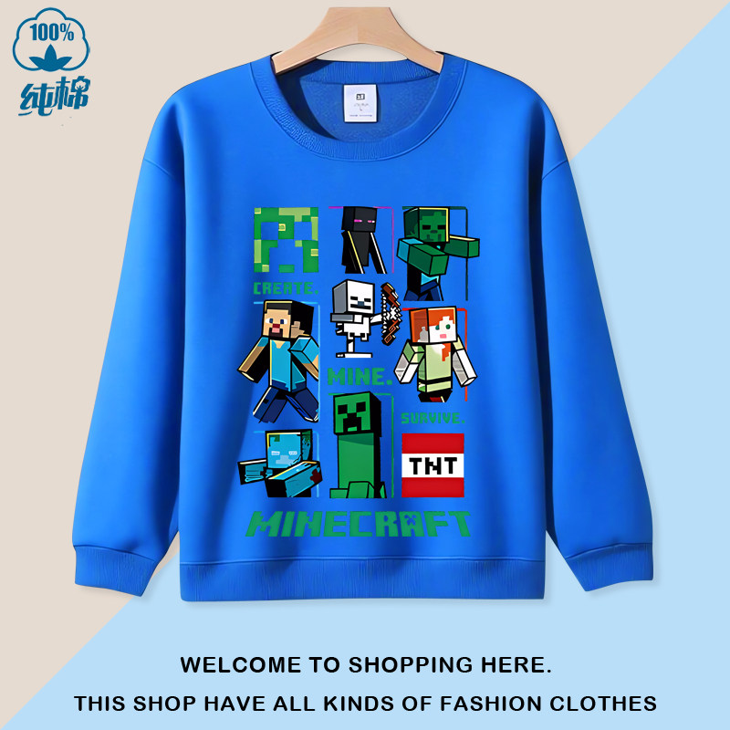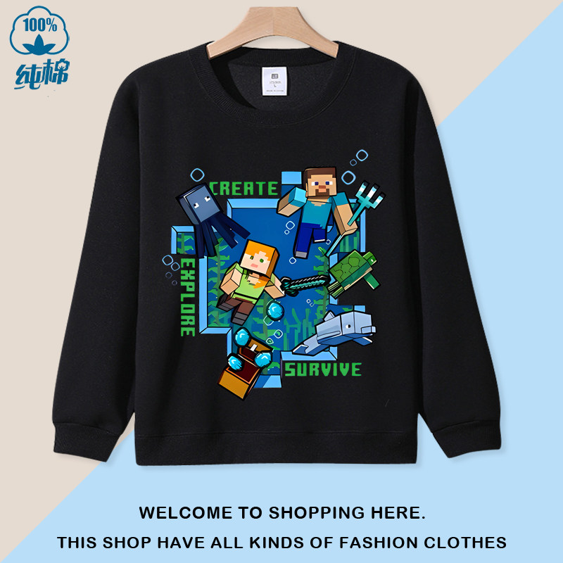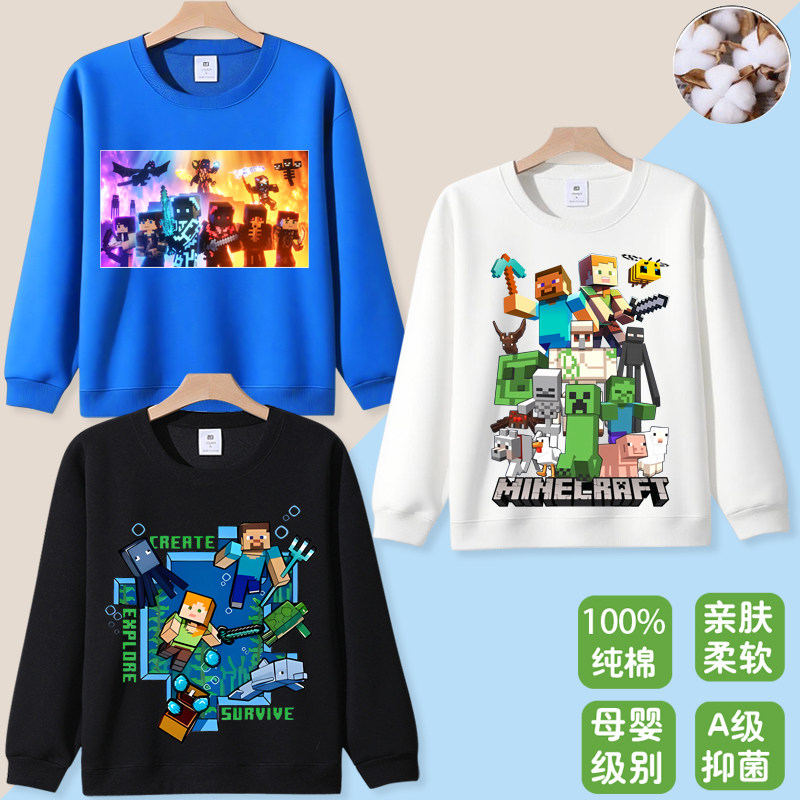 📚 我的世界衣服儿童圆领卫衣男童纯棉加绒大中童长袖打底衫秋冬装潮