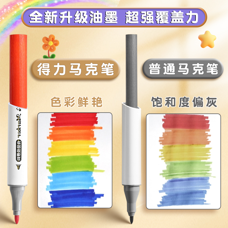📚 得力食品级水彩笔彩笔儿童无毒可水洗双头水性马克笔不透纸48色24色水彩笔小学生专用儿童画画笔彩笔画画专用