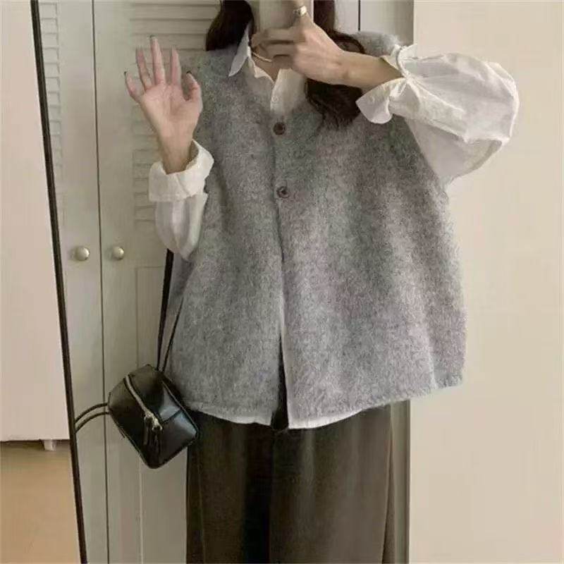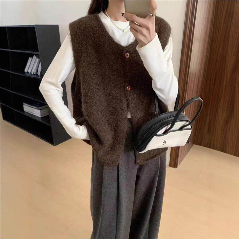 📚 2025新款轻奢针织马甲开衫女秋冬季新款背心韩系简约复古软糯宽松