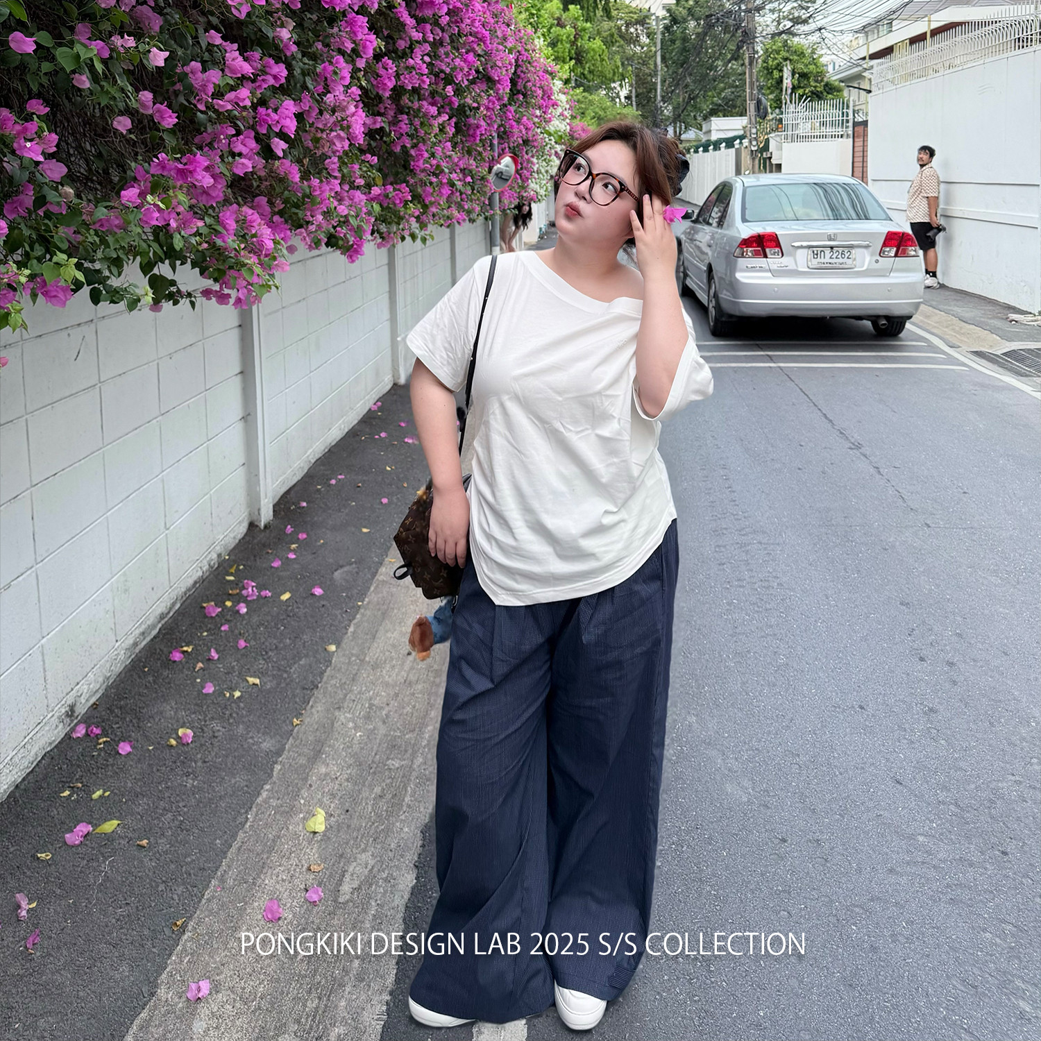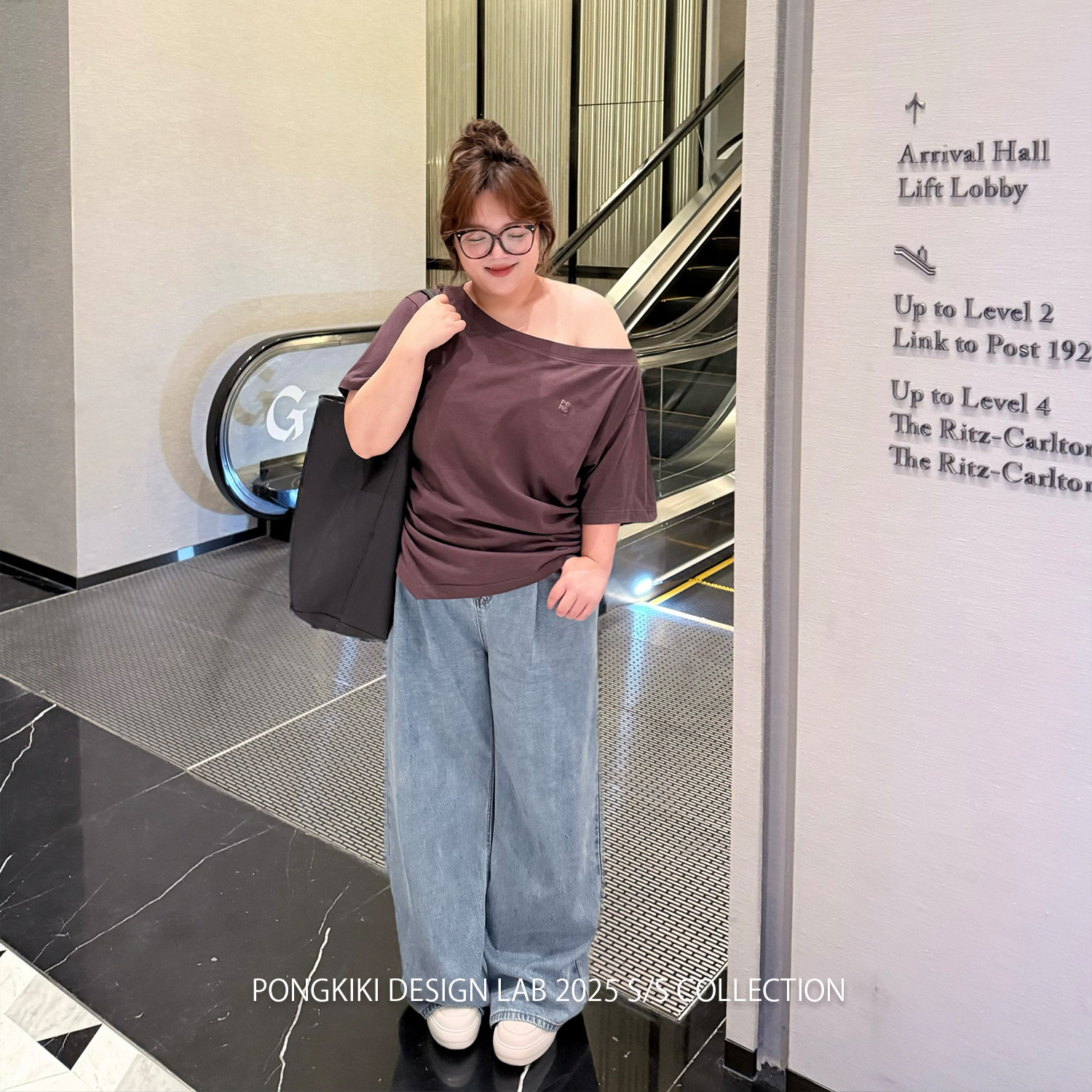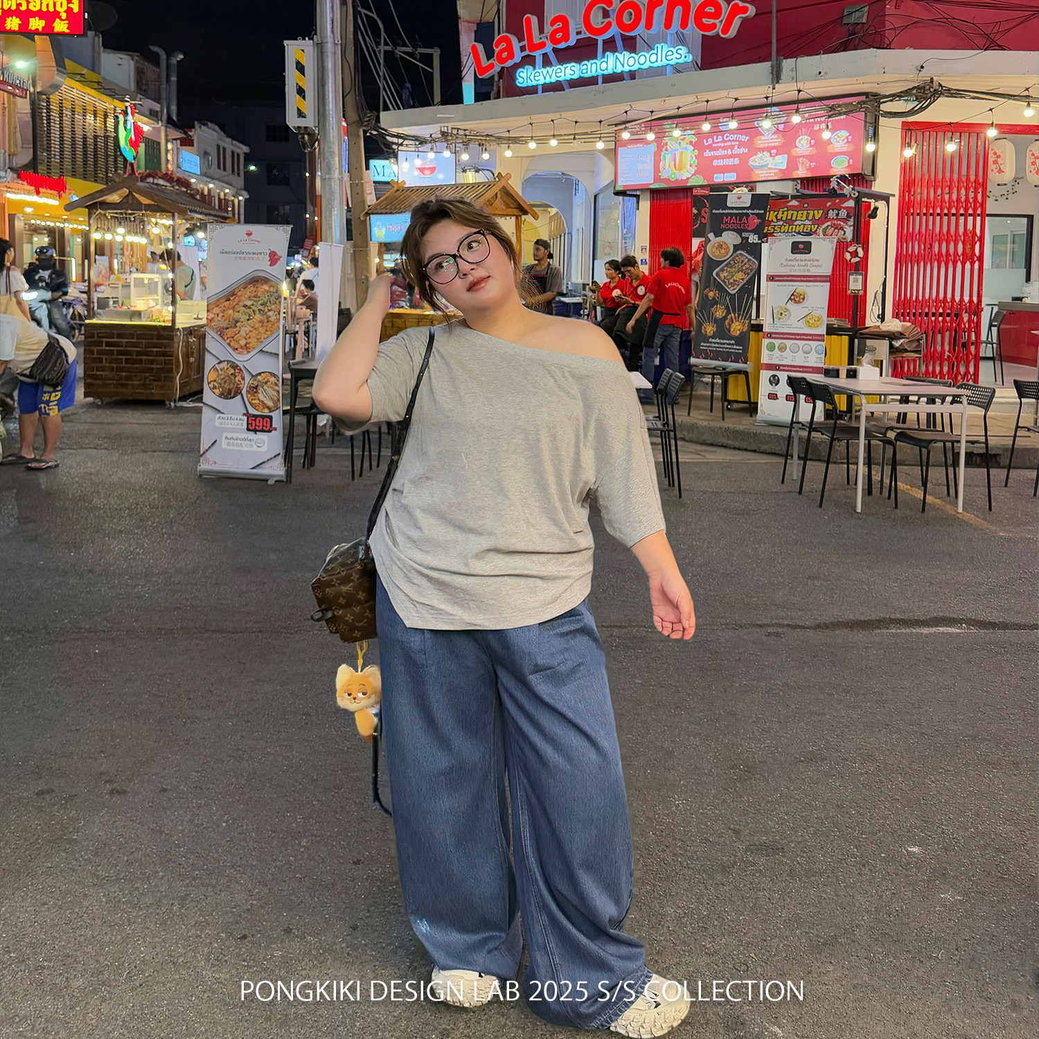 📚 老章和小胖PONGKIKI心动斜肩T恤女大码纯棉夏季速干透气宽松体恤