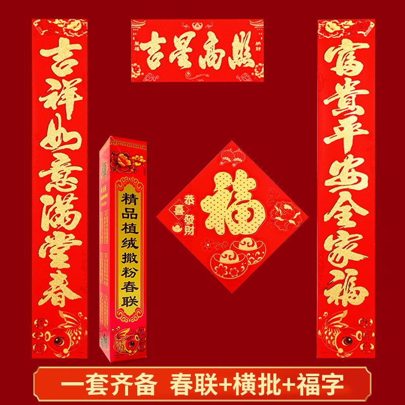 📚 植绒春联2026年新款马年新年春节过年对联贴农村大门门贴福字礼包