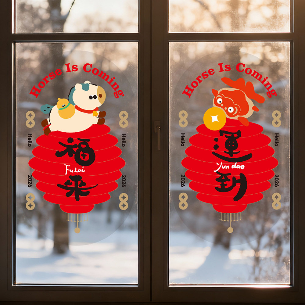 📚 2025新款静电贴新年马年窗花装饰过年春节福字贴画厨房门玻璃贴纸