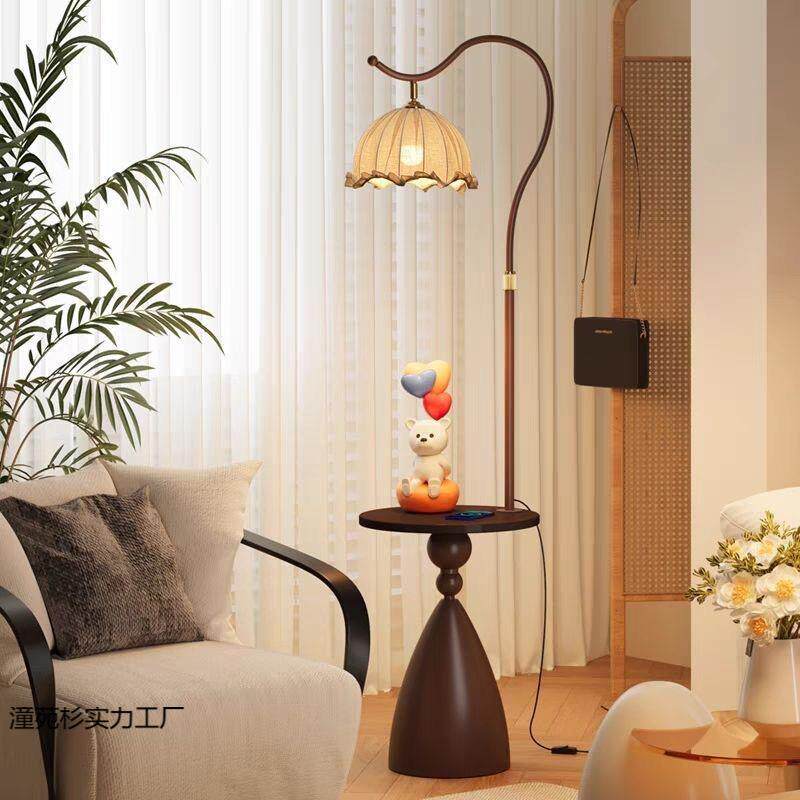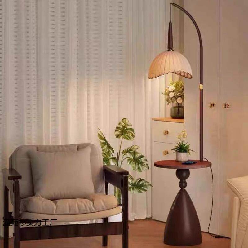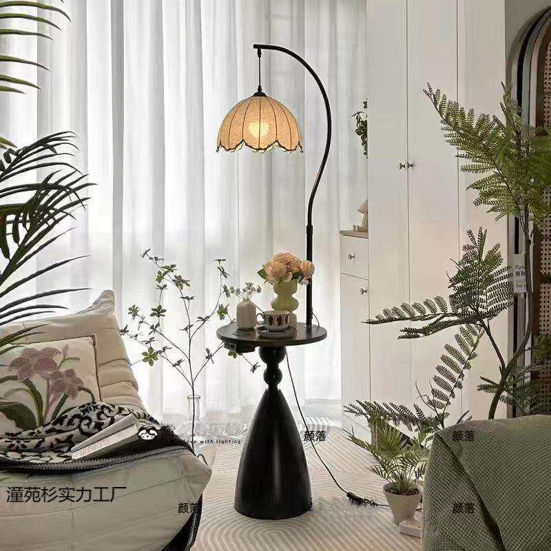 📚 落地灯客厅沙发边几中古法式美式复古床头置物架一体卧室立式台灯