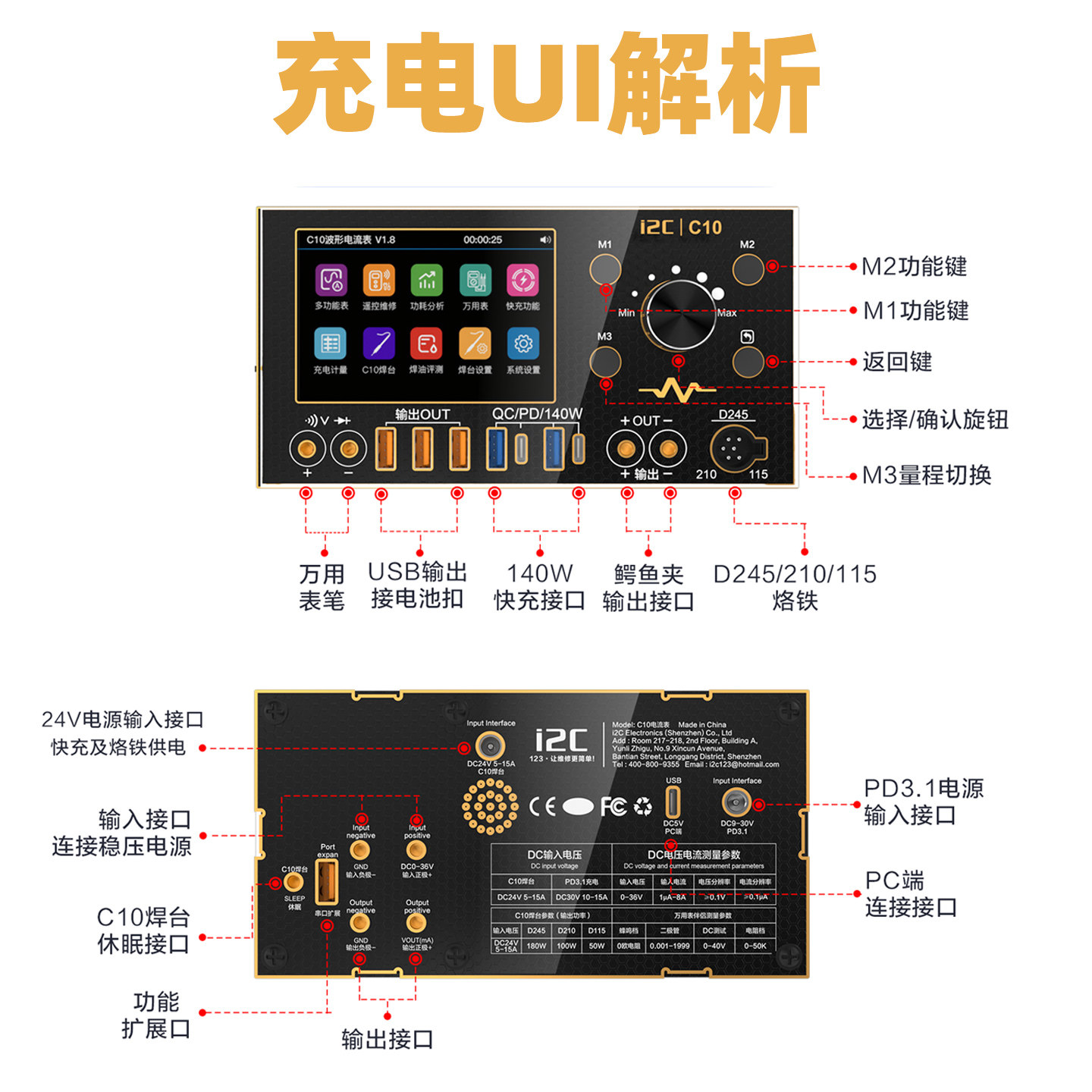 📚 i2C C10示波器电流表(镀金版) 万用表/焊台/超级快充/电源伴侣