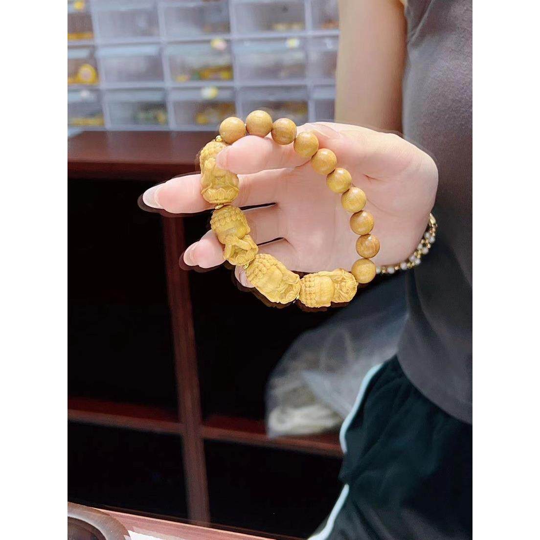 📚 中式四不佛手串 檀四不佛搭配芭比檀木圆10mm圆珠百搭好看