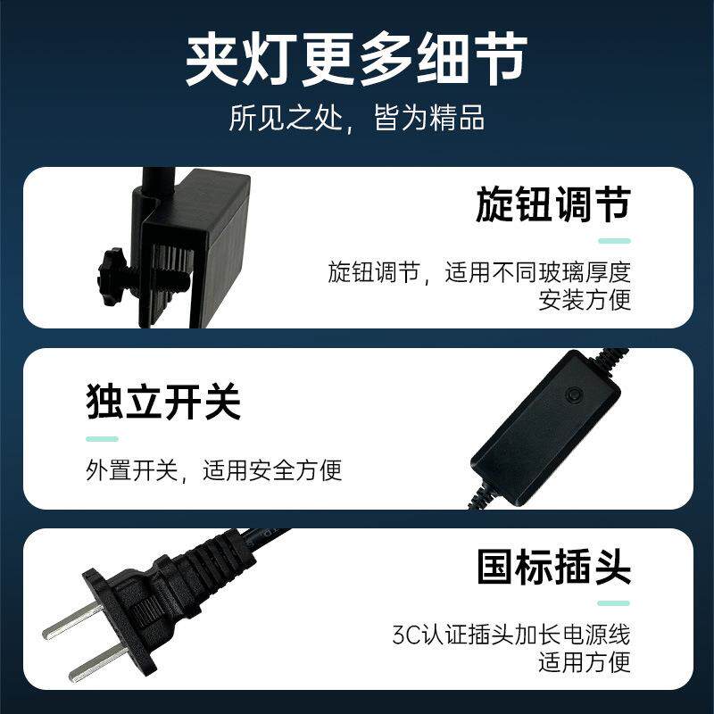 📚 鱼缸全光谱LED鱼缸节能夹灯水族架灯水草灯自然光三段变色可调节