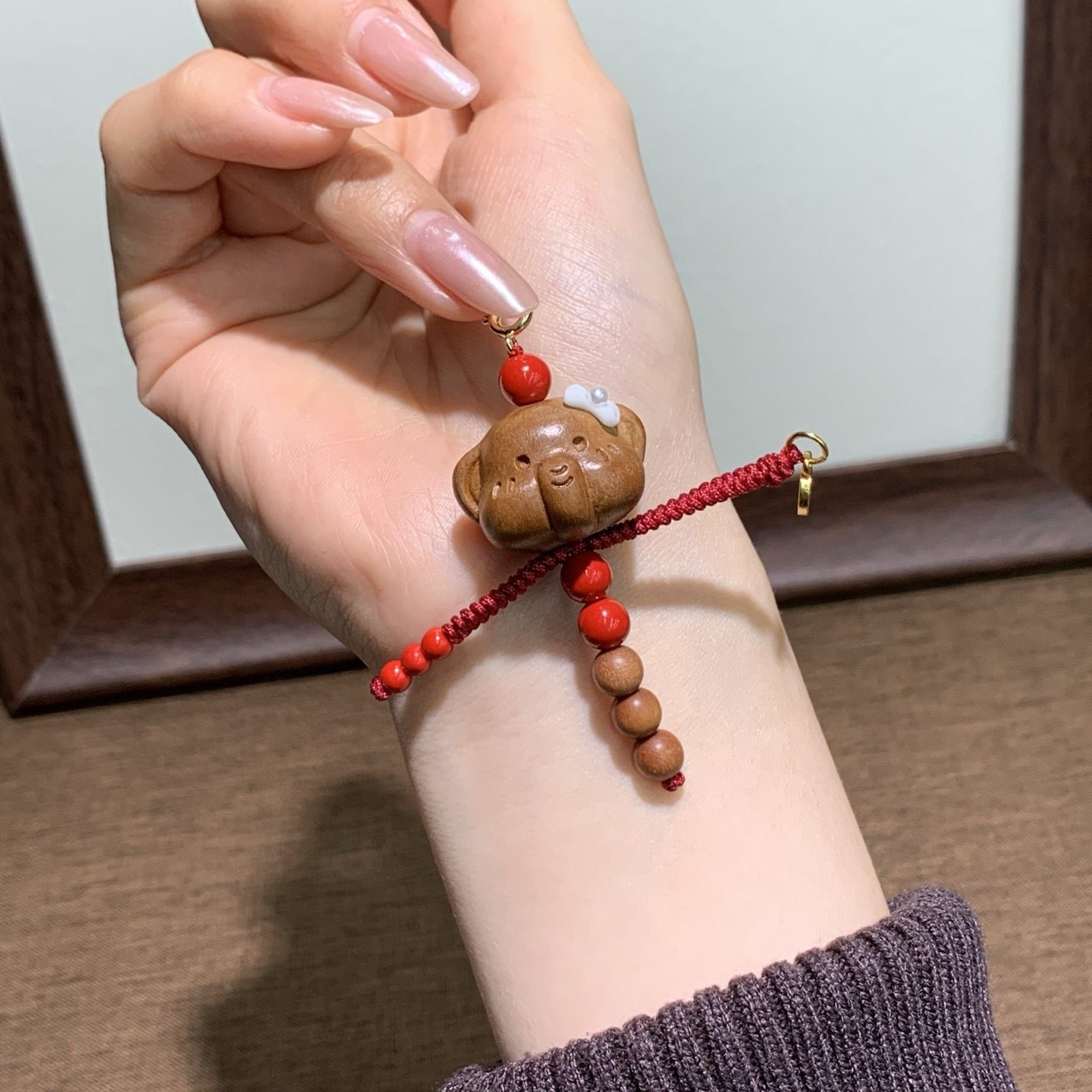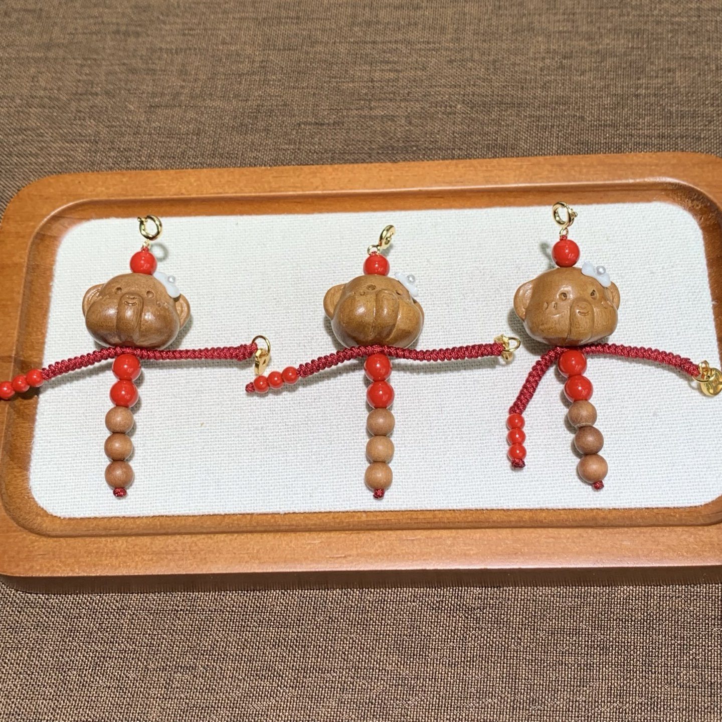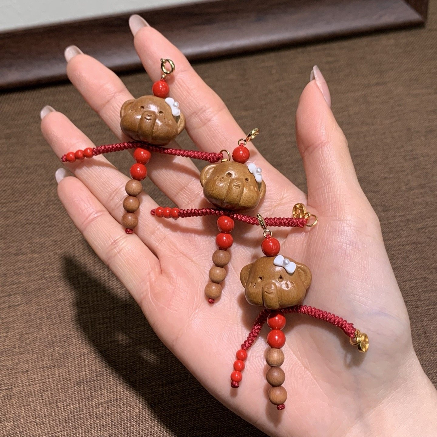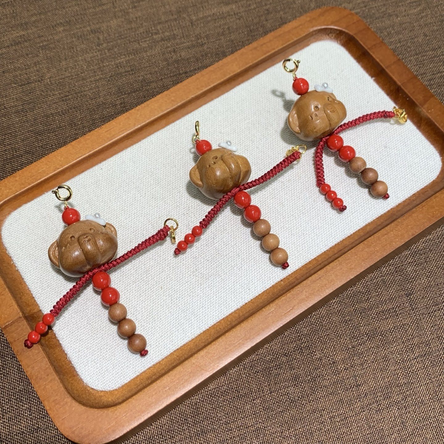 📚 天然桃木小象人小滴溜老山檀圆珠朱砂红砂铜鎏金钱币吊坠挂件饰品