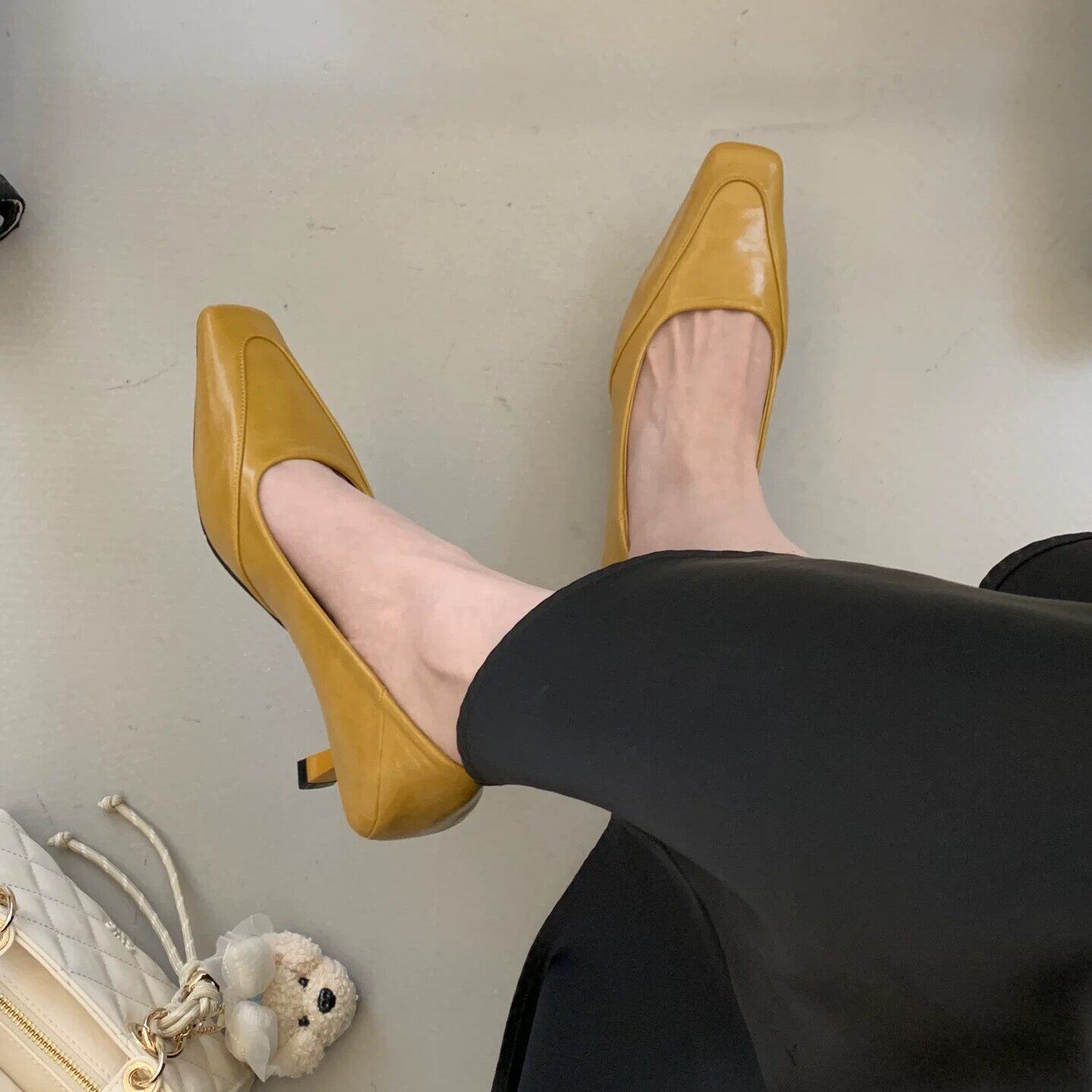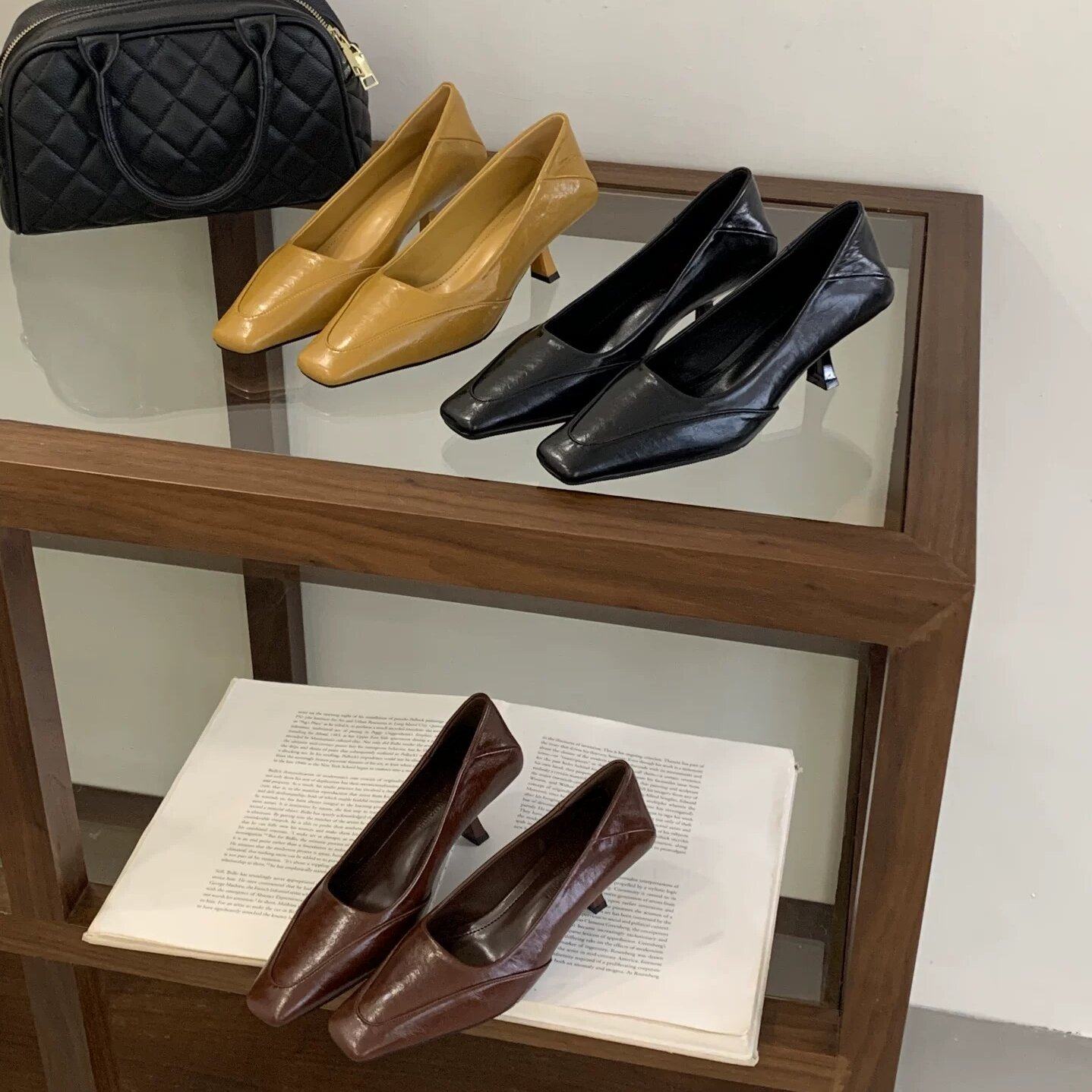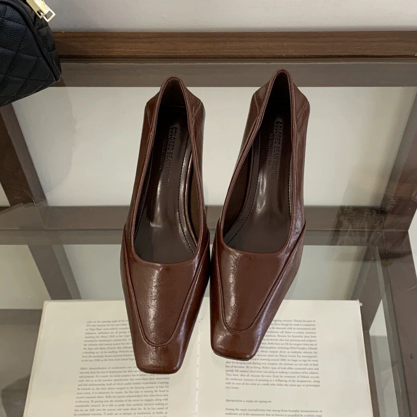 📚 COLORED BEAN MONTH2026春季新款法式复古方头细跟浅口单鞋女瓢鞋