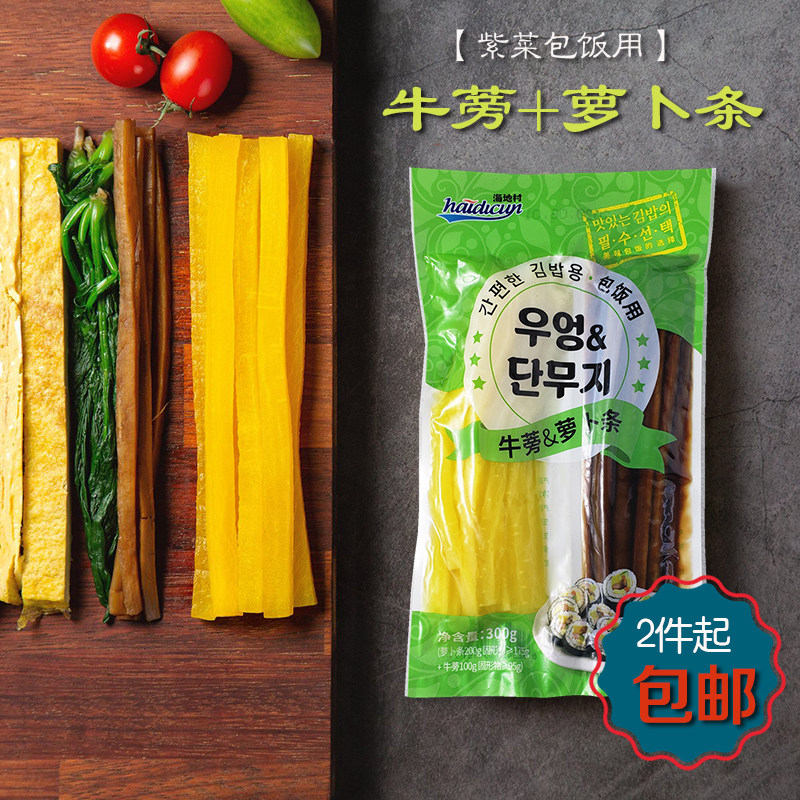 📚 海地村腌渍切条牛蒡萝卜韩式紫菜包饭寿司用双拼组合即食食材300g