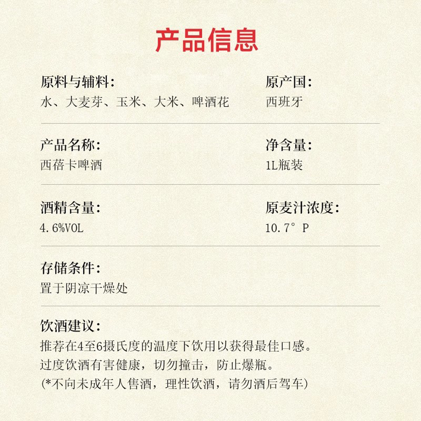 📚 达姆西蓓卡淡色拉格黄啤酒1L 西班牙整箱进口 年货送礼