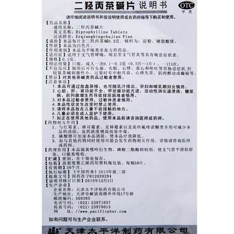二羟丙茶碱平喘支气管哮喘止咳哮喘