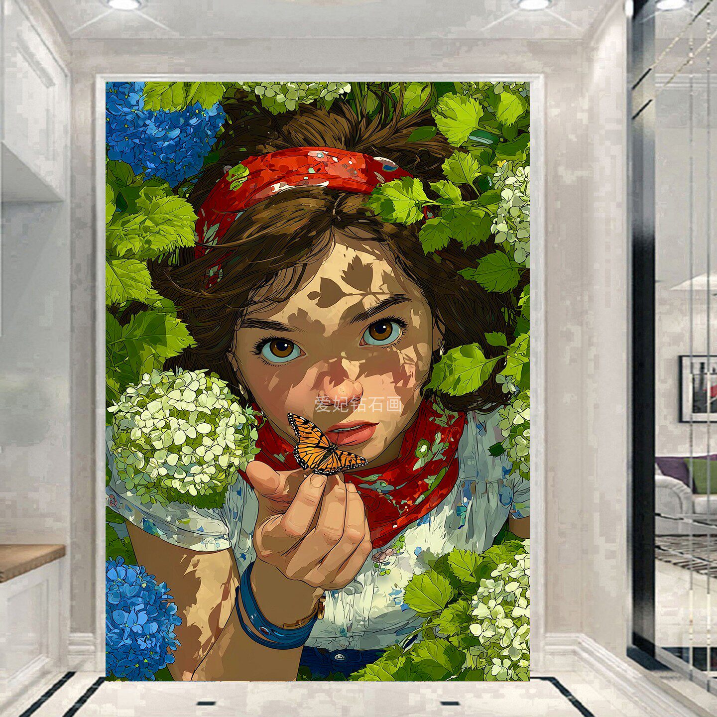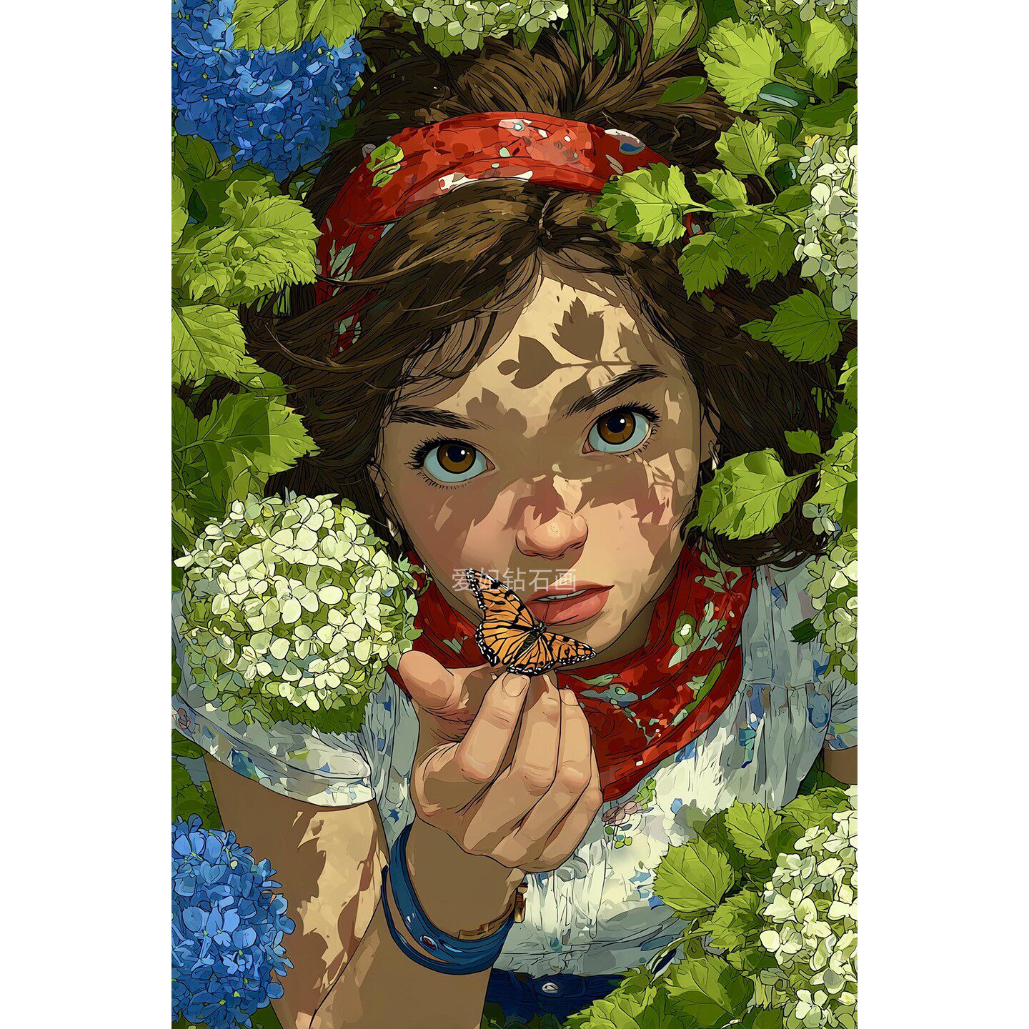📚 2025新款复杂高难度DIY树脂方钻满钻贴钻钻石画绣球花美少女蝴蝶