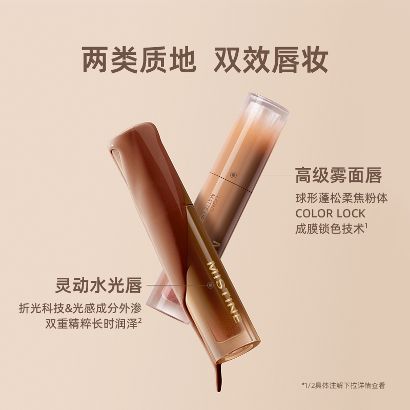📚 Mistine蜜丝婷唇釉516水感镜面咖啡管唇泥雾面奶咖口红nishuini
