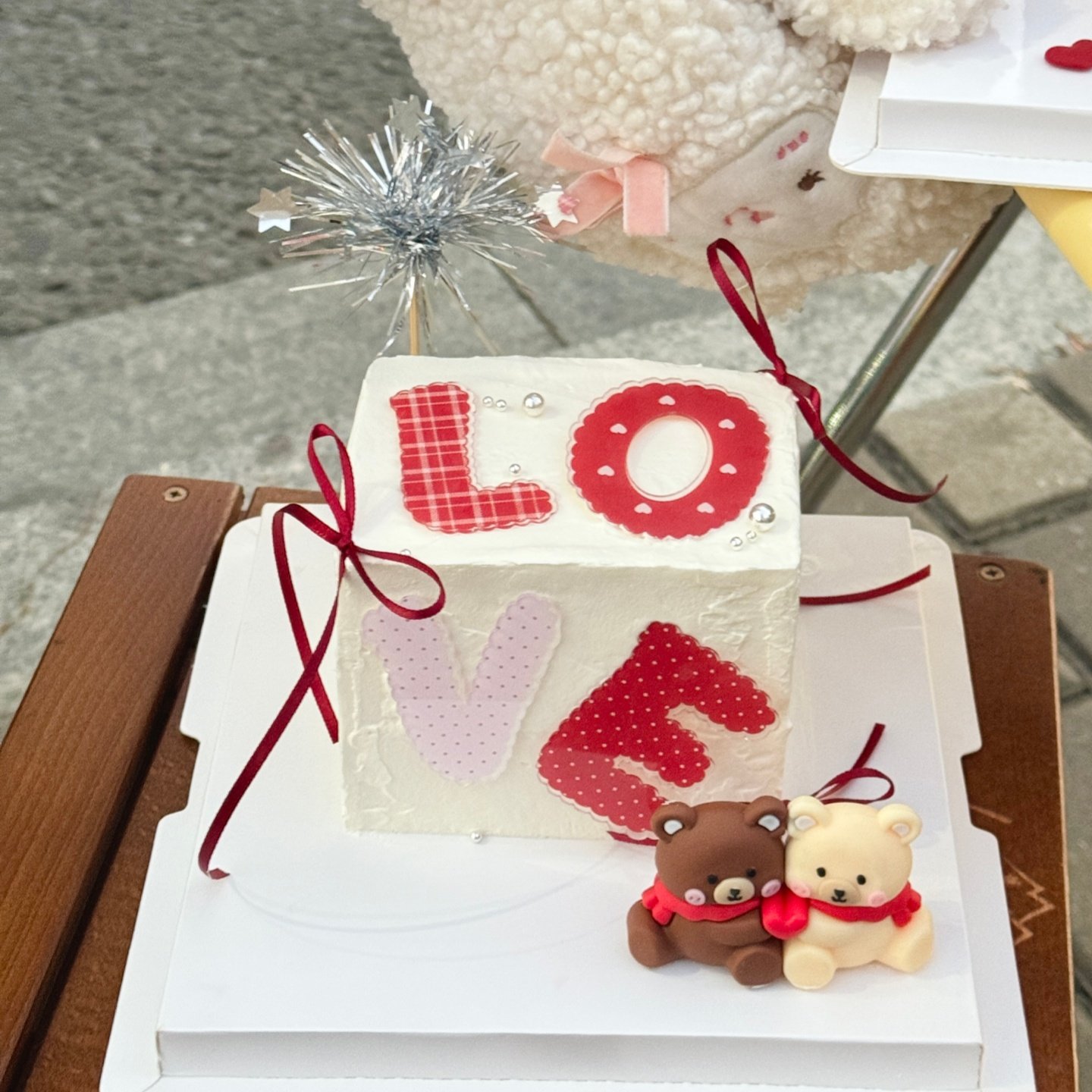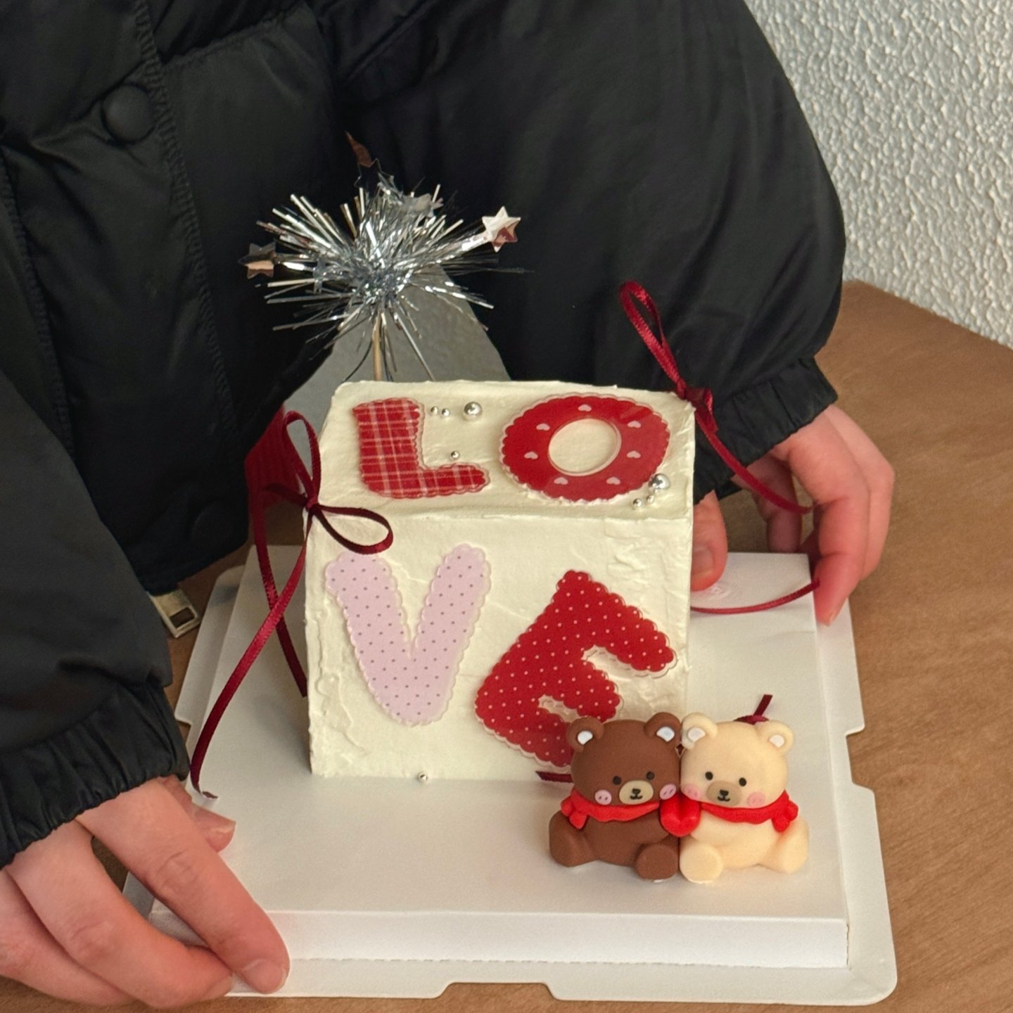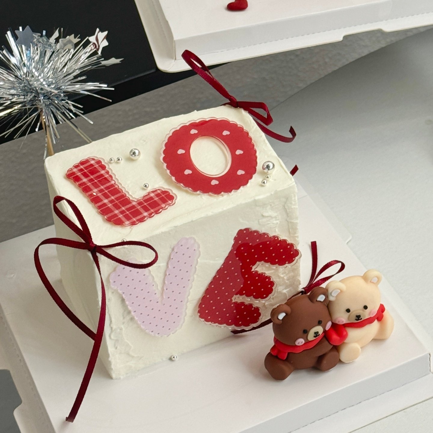 📚 2.14网红情人节连体熊蛋糕装饰爱心love亚克力情侣纪念日装扮插件