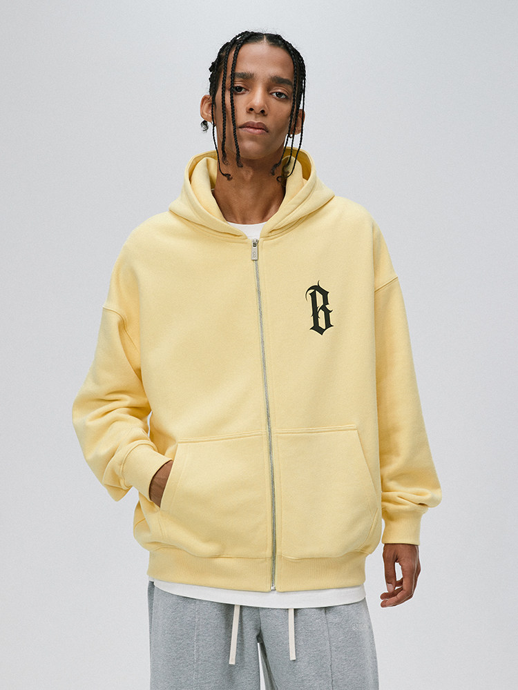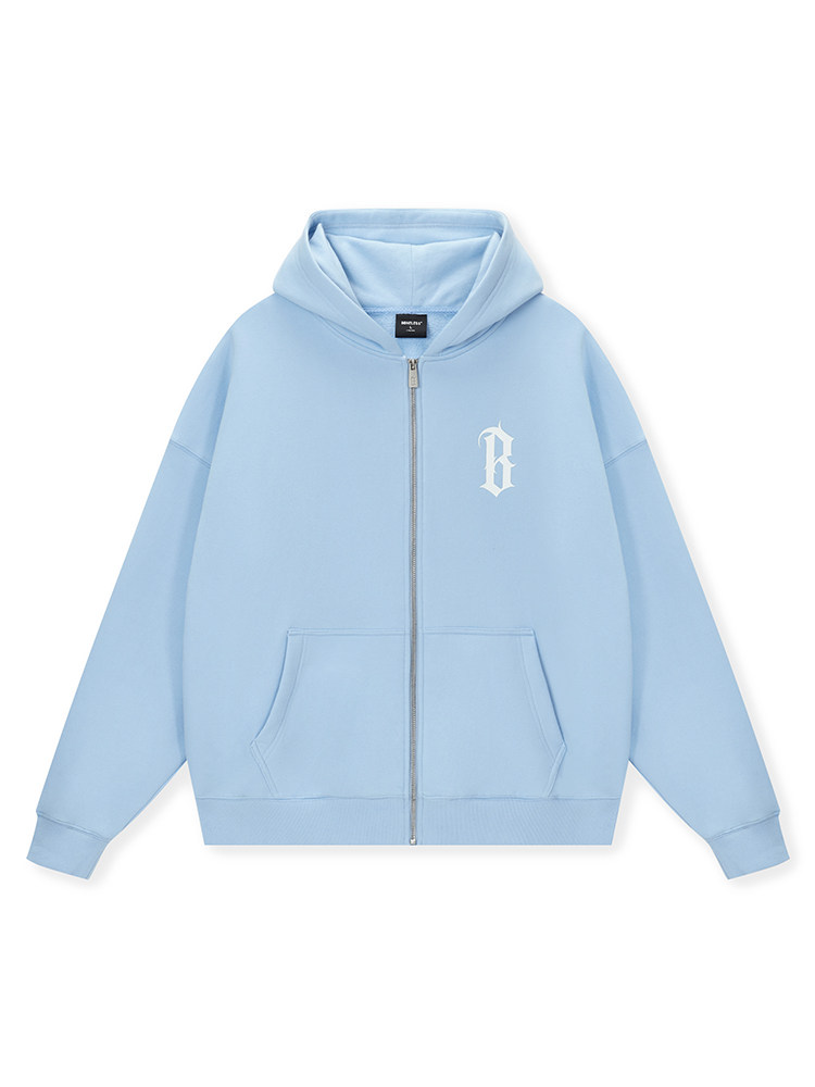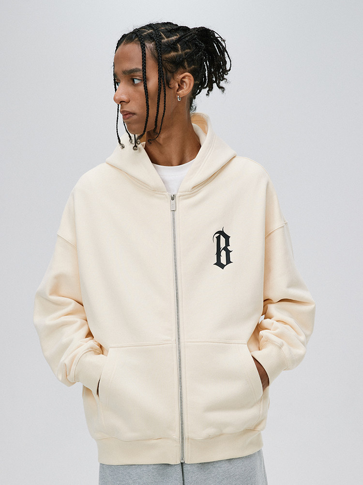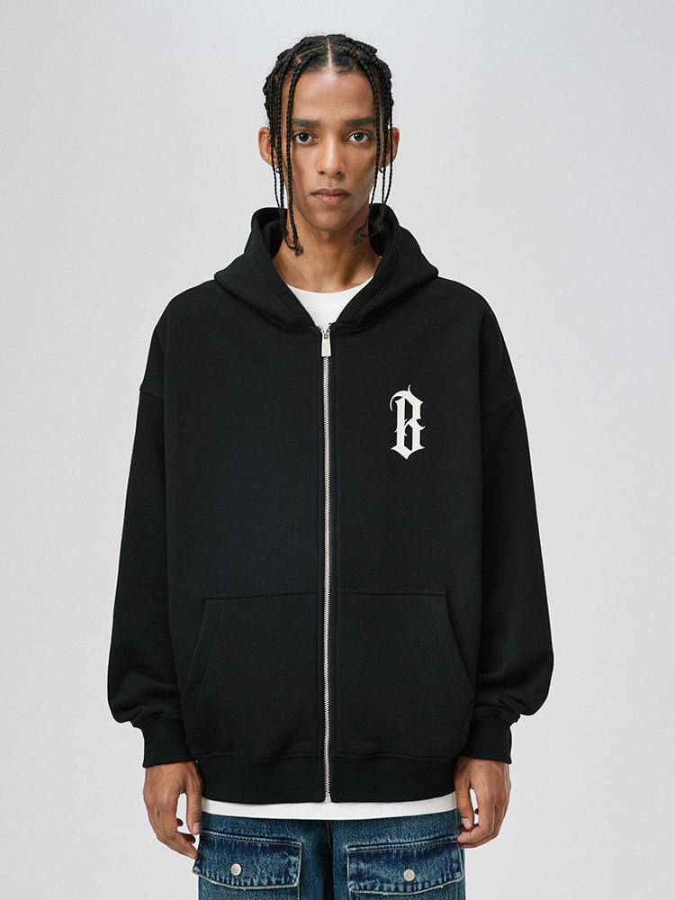 📚 BONELESS基础B字印花拉链开衫连帽卫衣美式高街男女秋冬帽衫外套