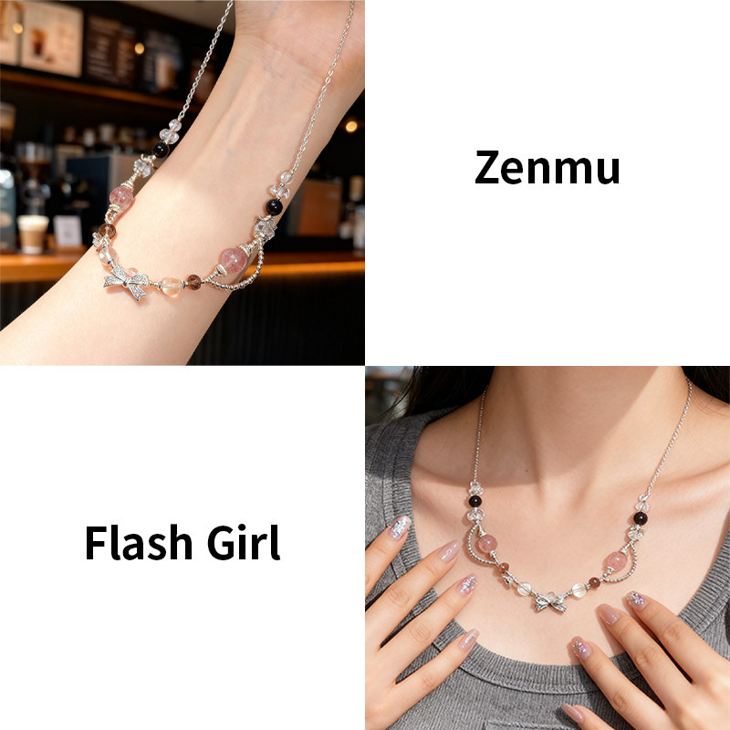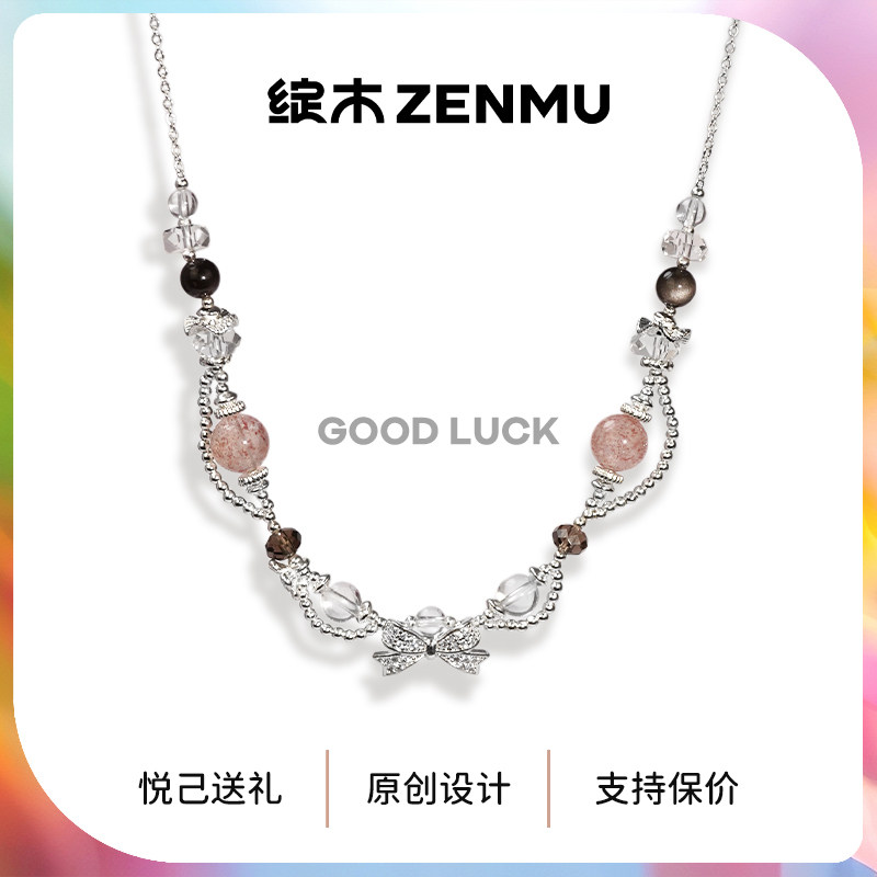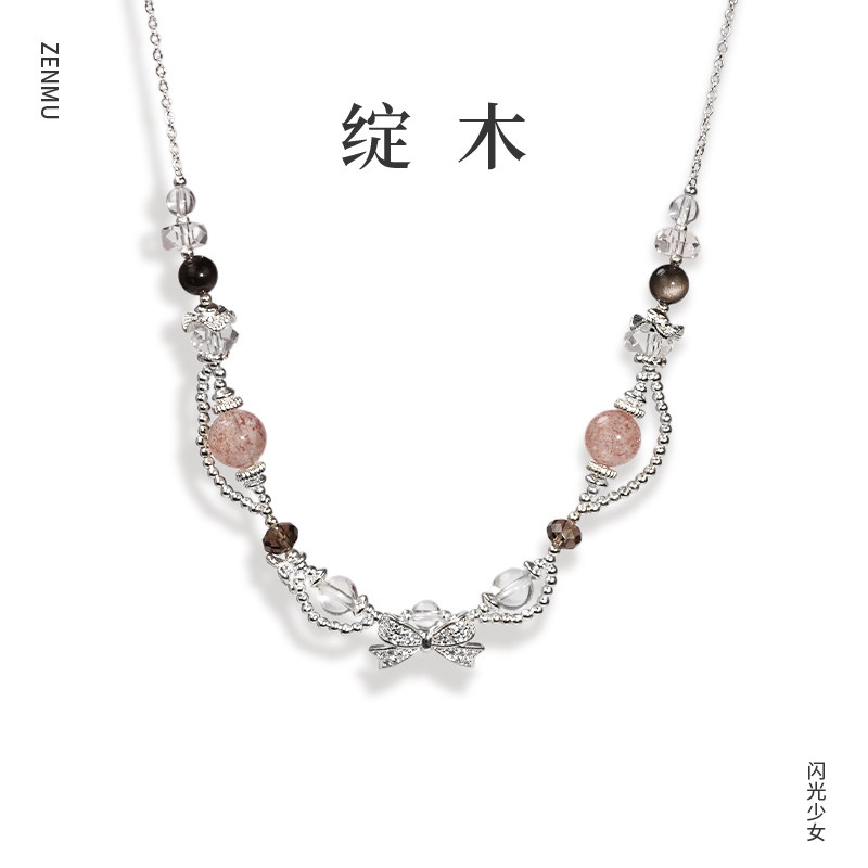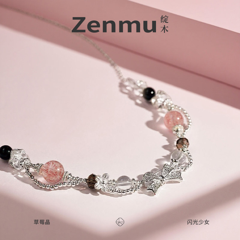 🍓夏日炎炎,想要一款既时尚又具有独特魅力的饰品?那就来试试这款“zenmu/绽木原创【闪光少女】天然白水体草莓晶银曜石白水晶项链”吧!🎉