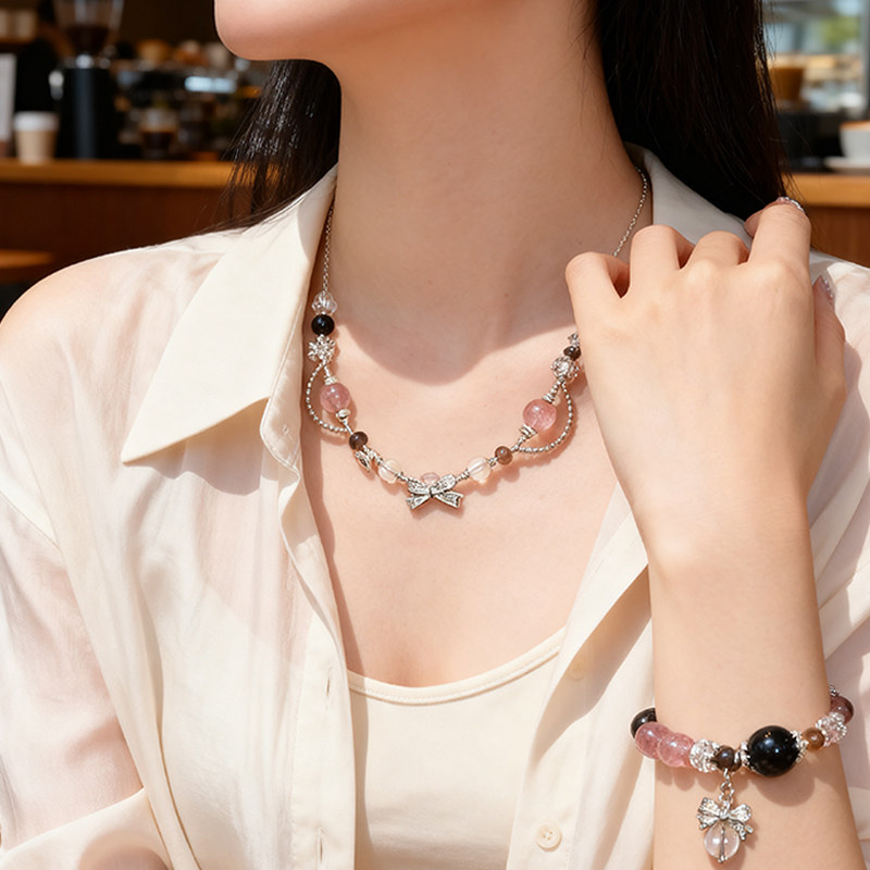 2. 闪耀光芒:草莓晶的加入,让整个项链看起来闪闪发光,非常吸引人。